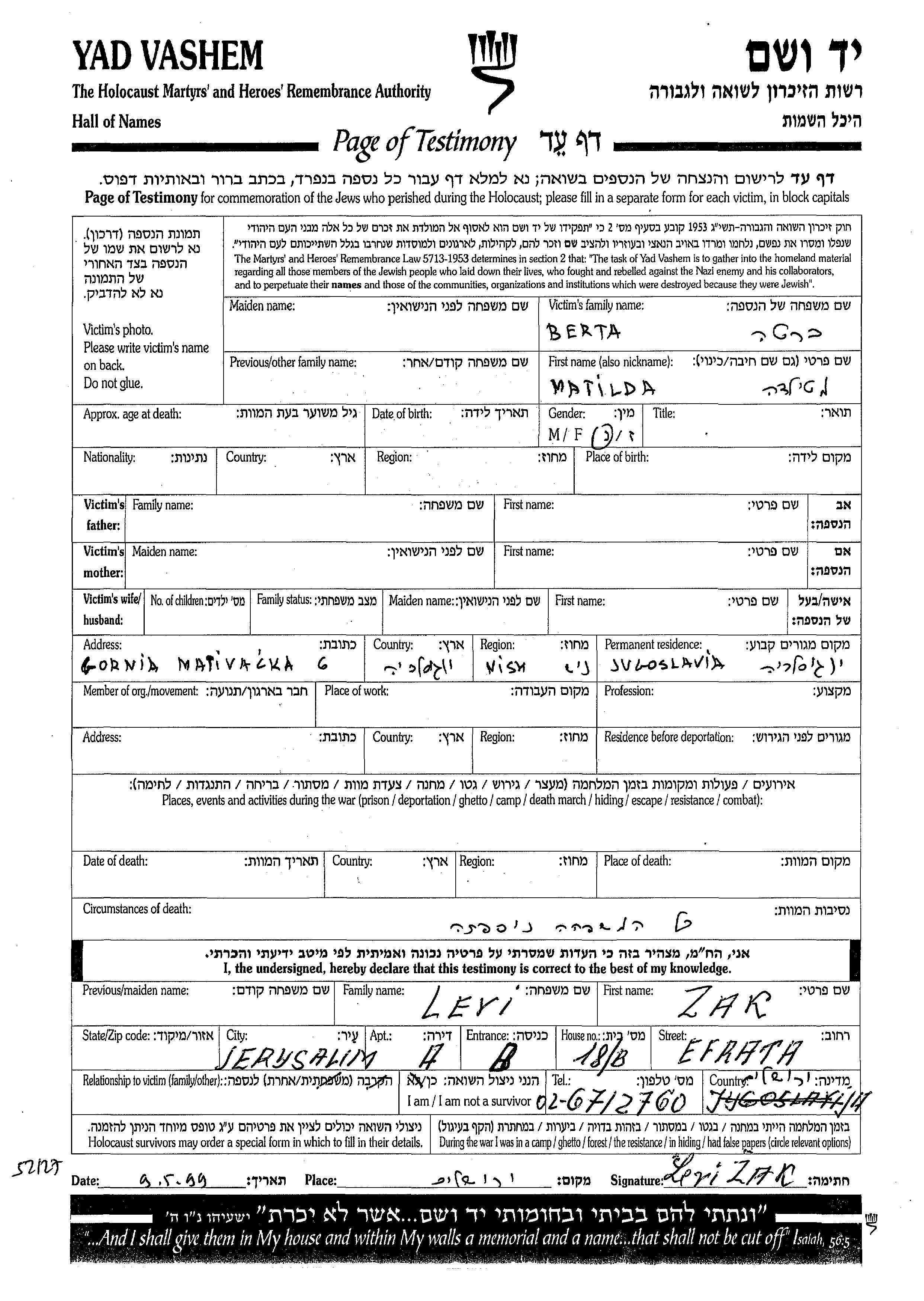 יד ושם - המפעל להנצחת השמות בדפי עד