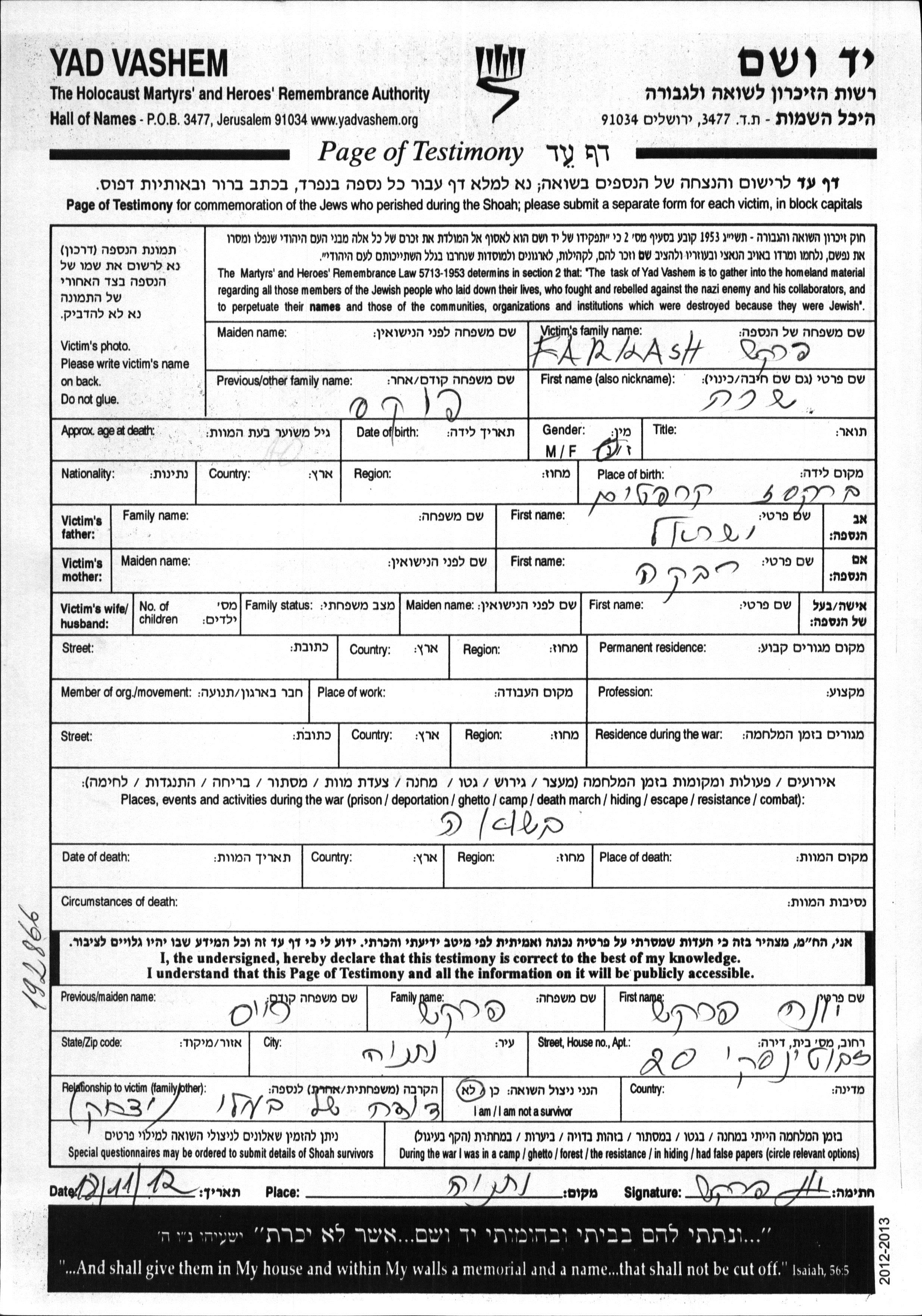 יד ושם - המפעל להנצחת השמות בדפי עד