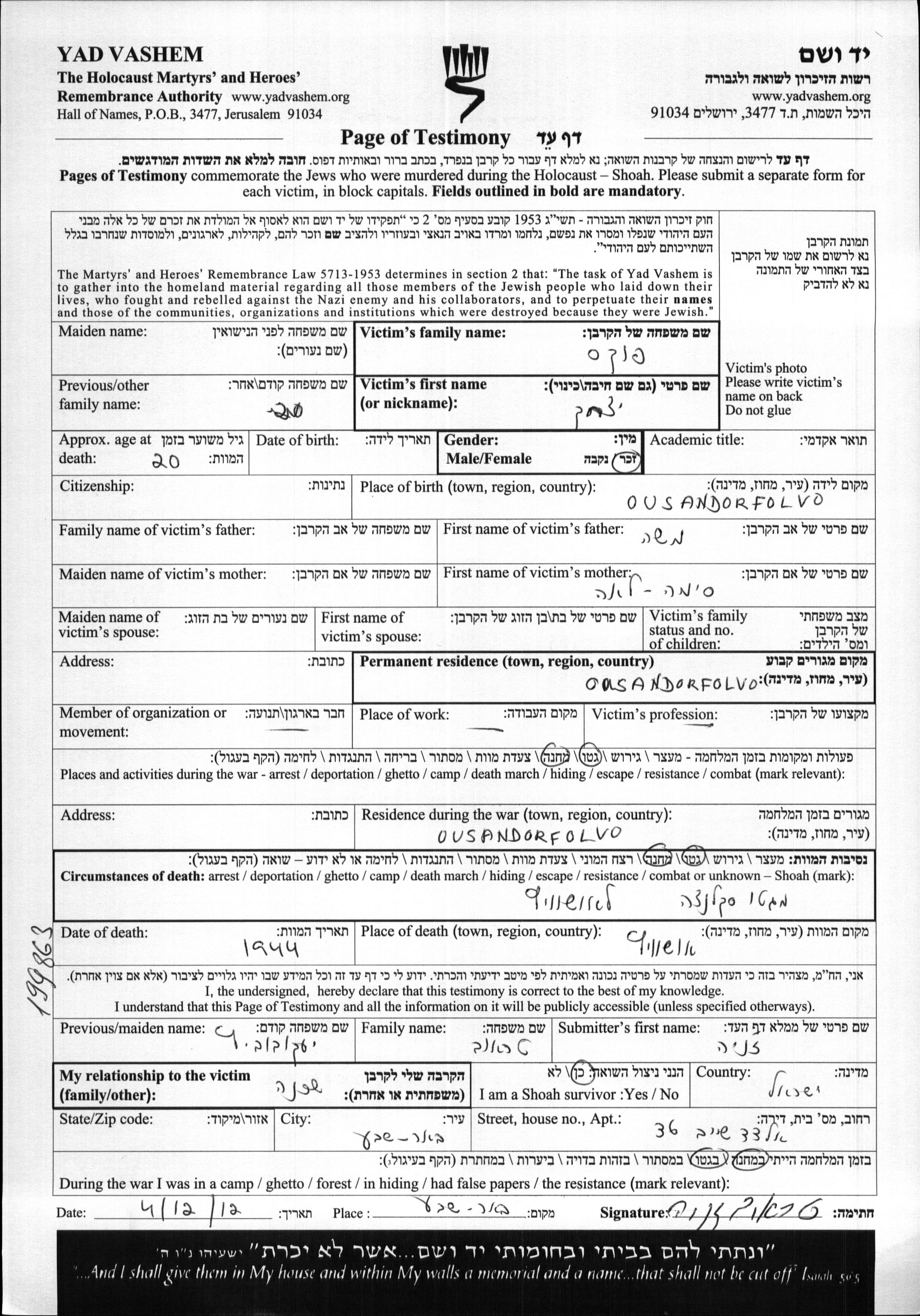 יד ושם - המפעל להנצחת השמות בדפי עד
