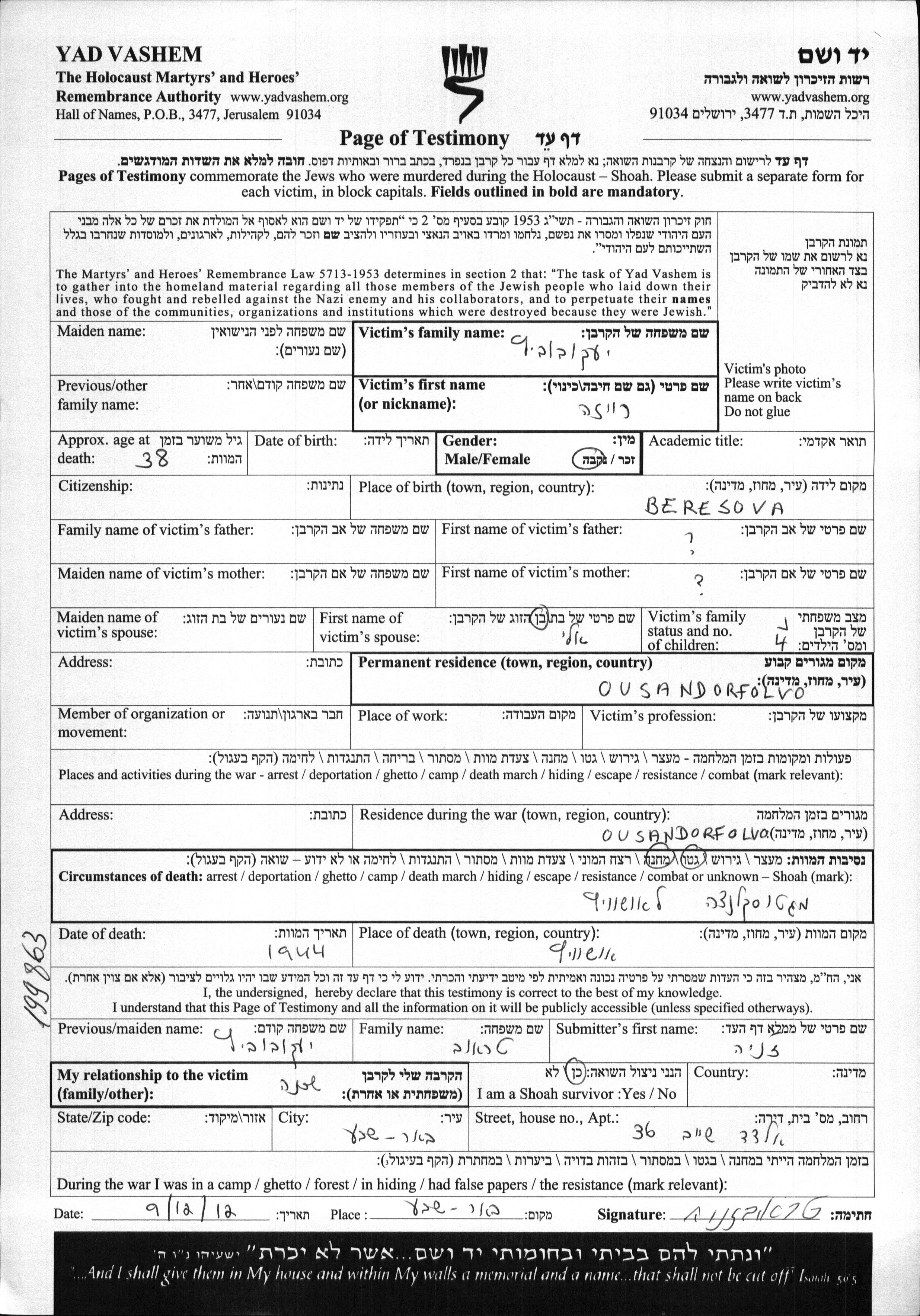 חיפוש שם מוסר דף העד. חיפוש לפי כל שם פרטי, כולל כינוי או שם חיבה