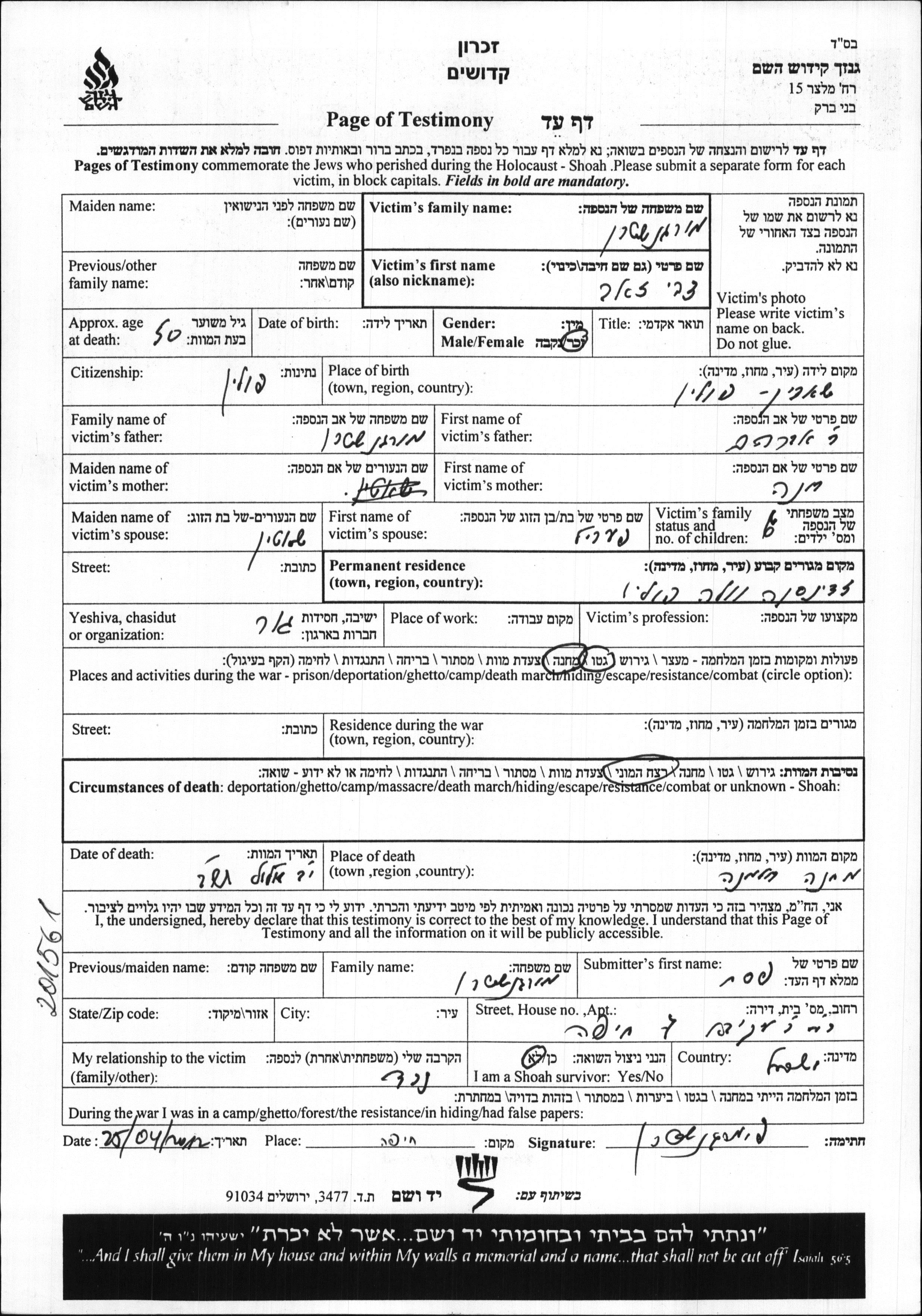 יד ושם - המפעל להנצחת השמות בדפי עד