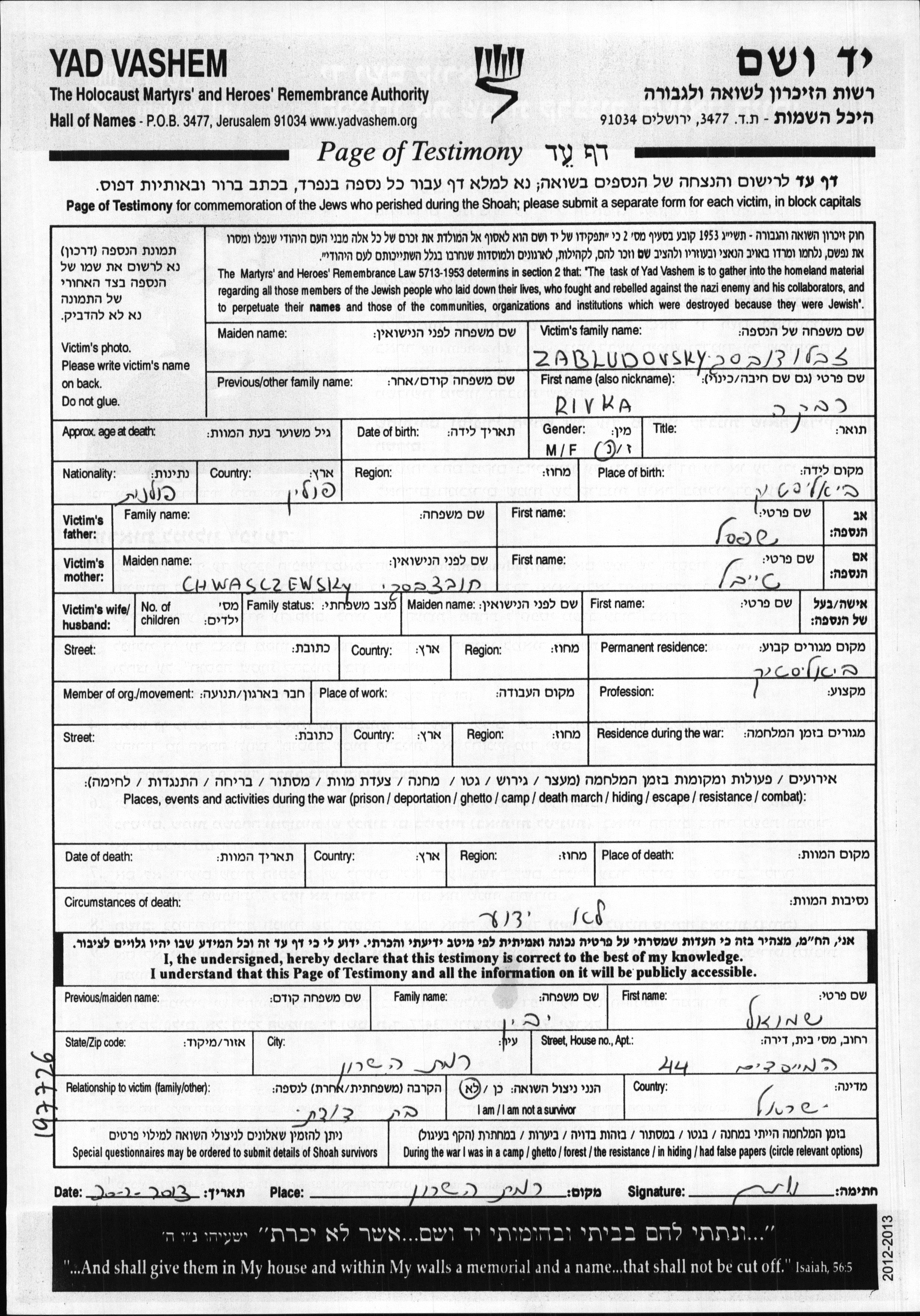 Zabludovsky רבקה Bialystok, פולין דף-עד