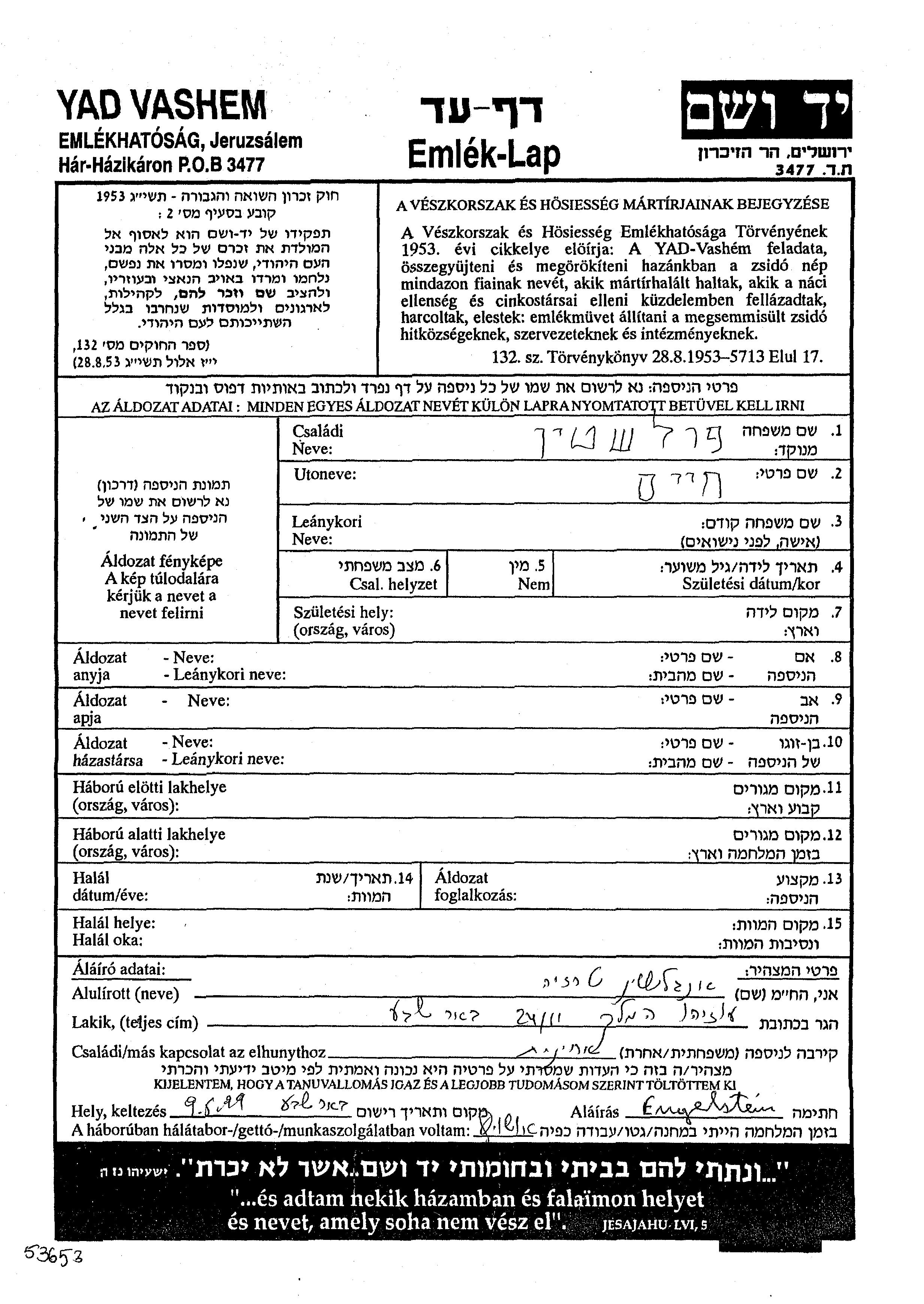 יד ושם - המפעל להנצחת השמות בדפי עד