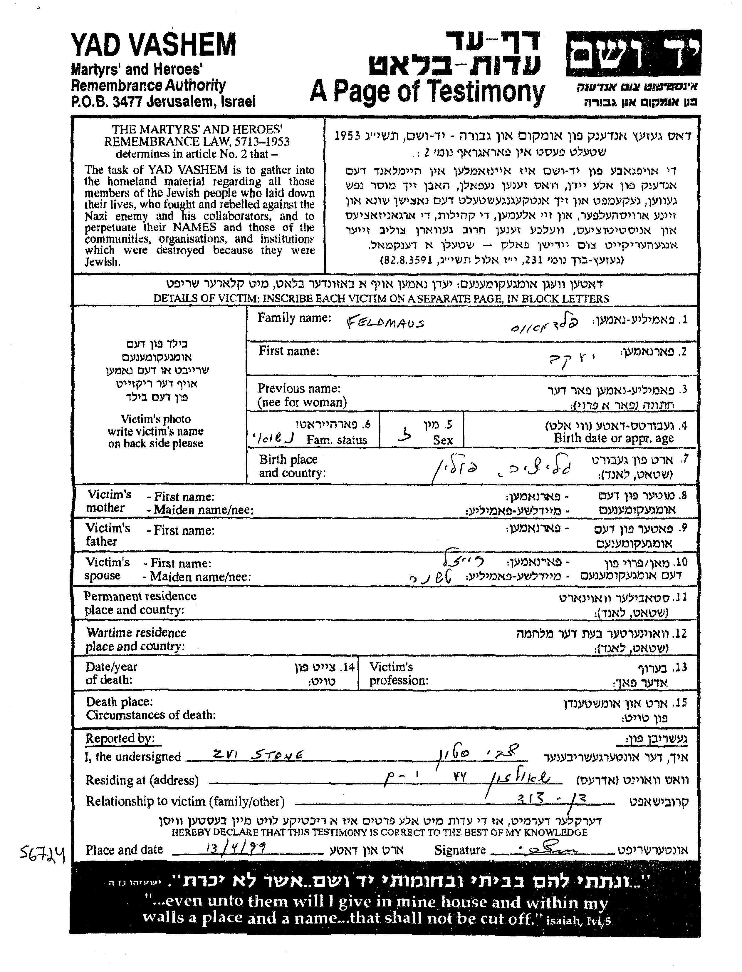 יד ושם - המפעל להנצחת השמות בדפי עד