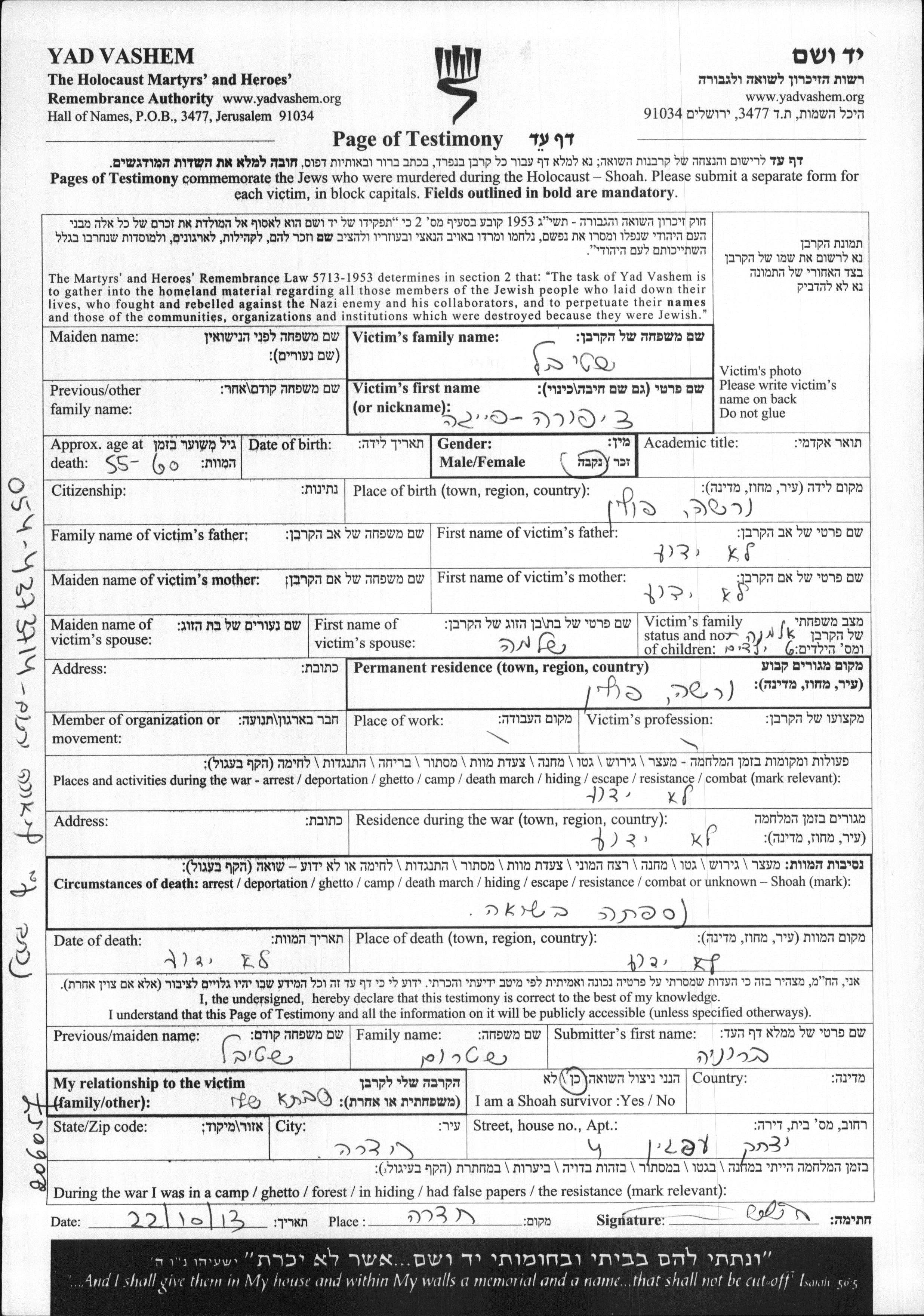 יד ושם - המפעל להנצחת השמות בדפי עד