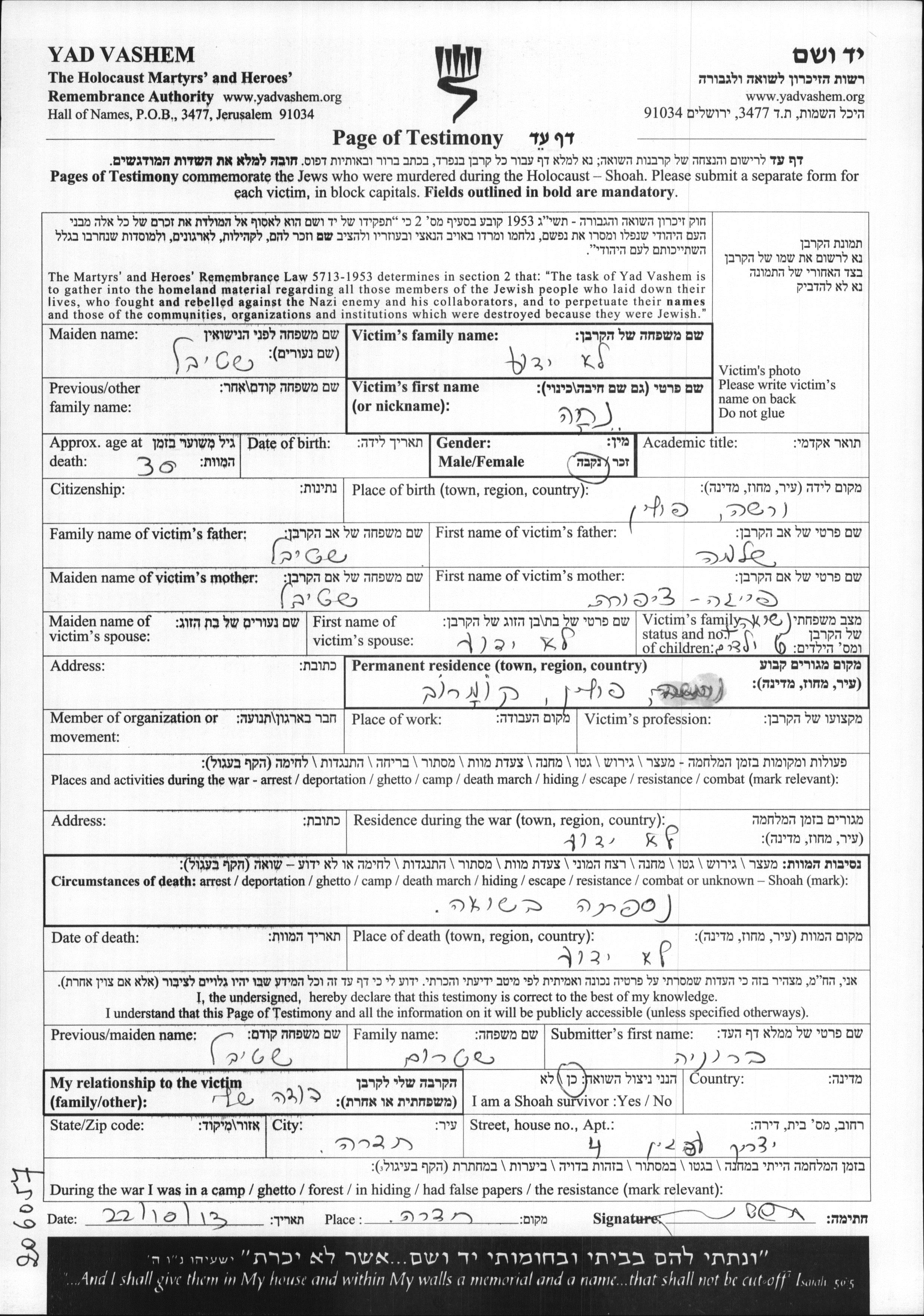 יד ושם - המפעל להנצחת השמות בדפי עד