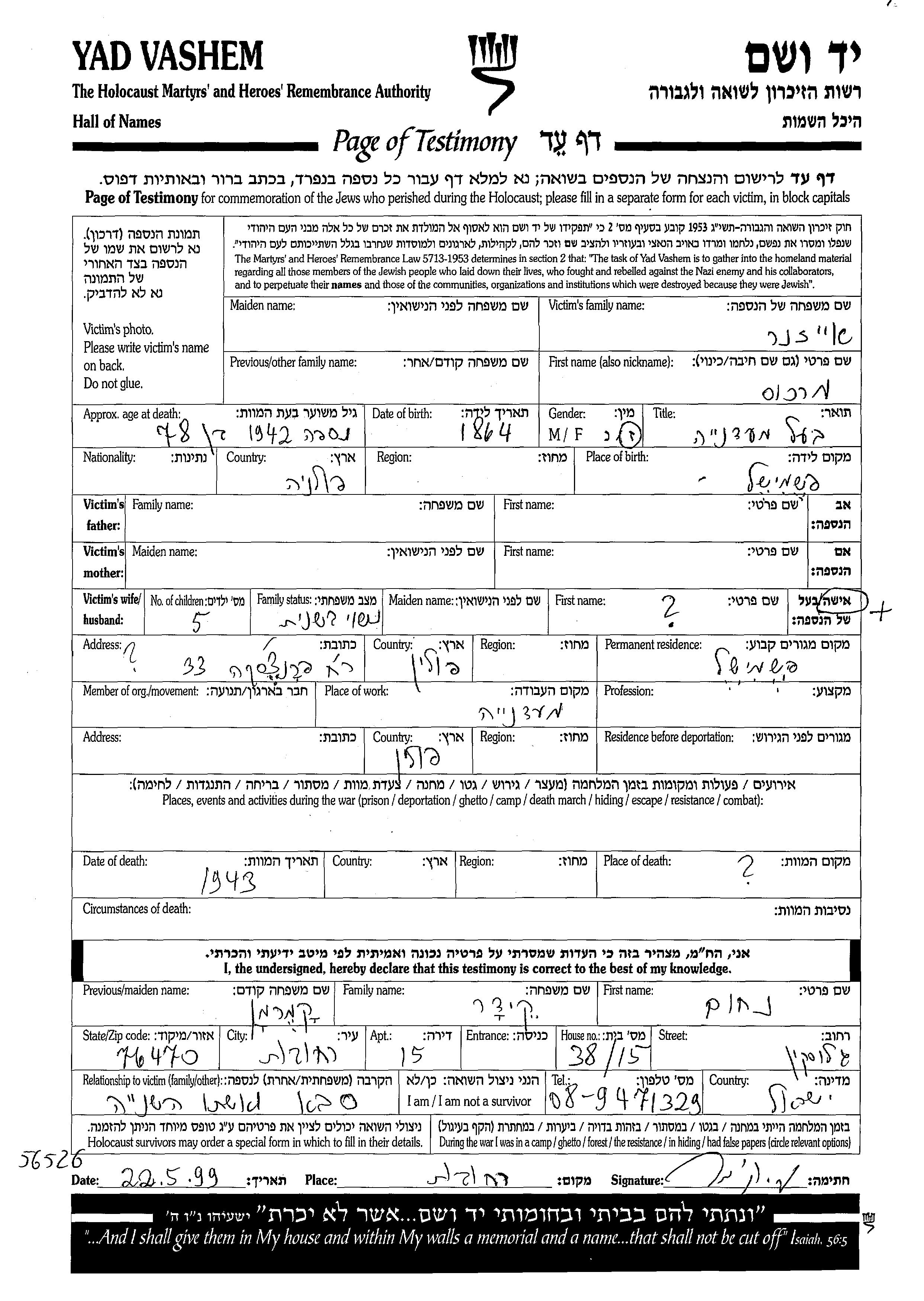 יד ושם - המפעל להנצחת השמות בדפי עד