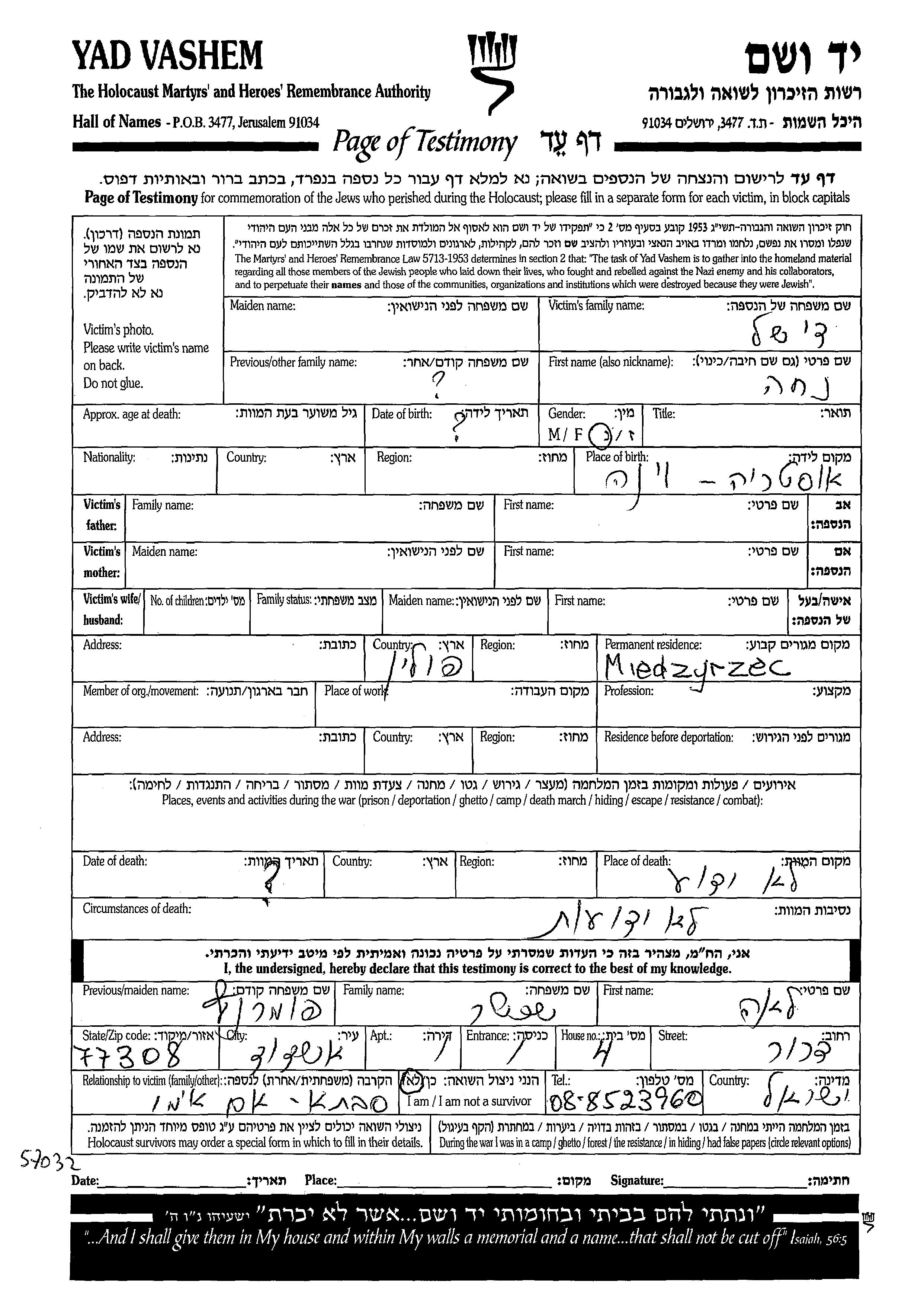 יד ושם - המפעל להנצחת השמות בדפי עד