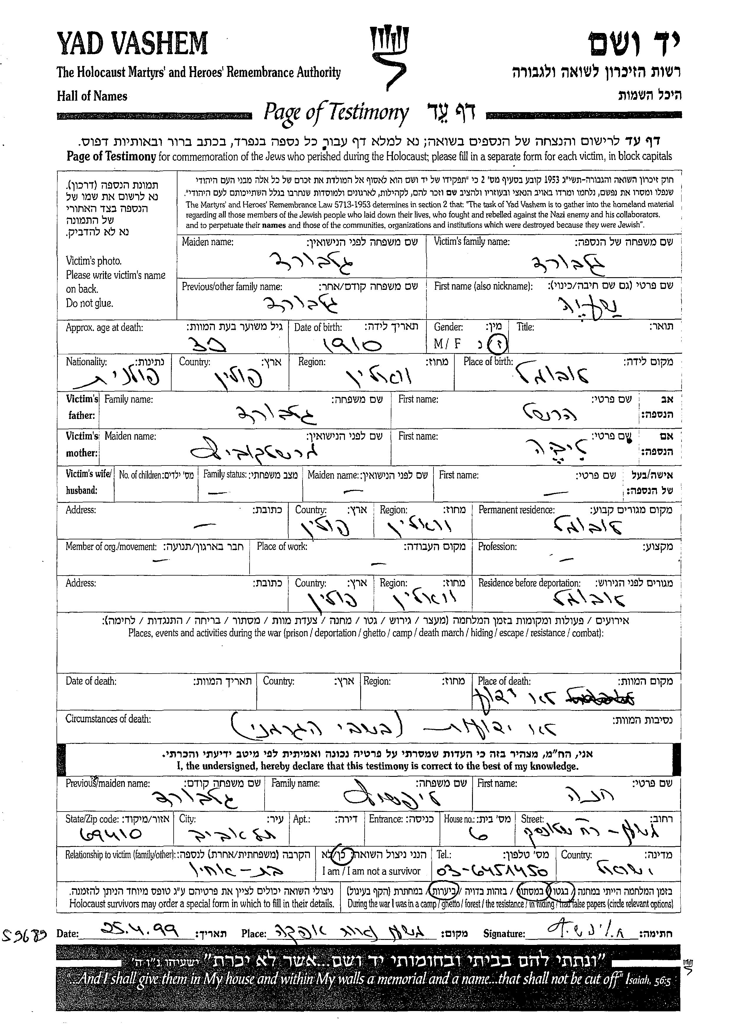 יד ושם - המפעל להנצחת השמות בדפי עד