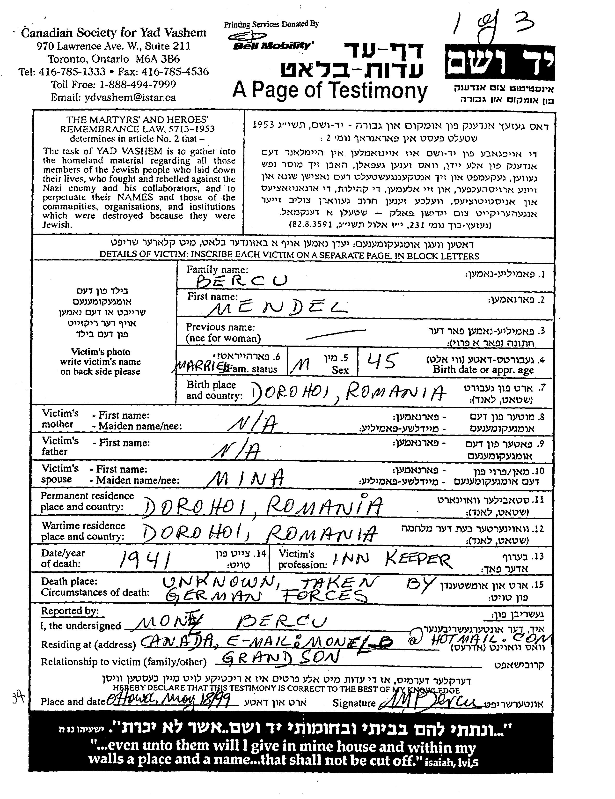 Bercu מנדל Dorohoi, רומניה דף-עד