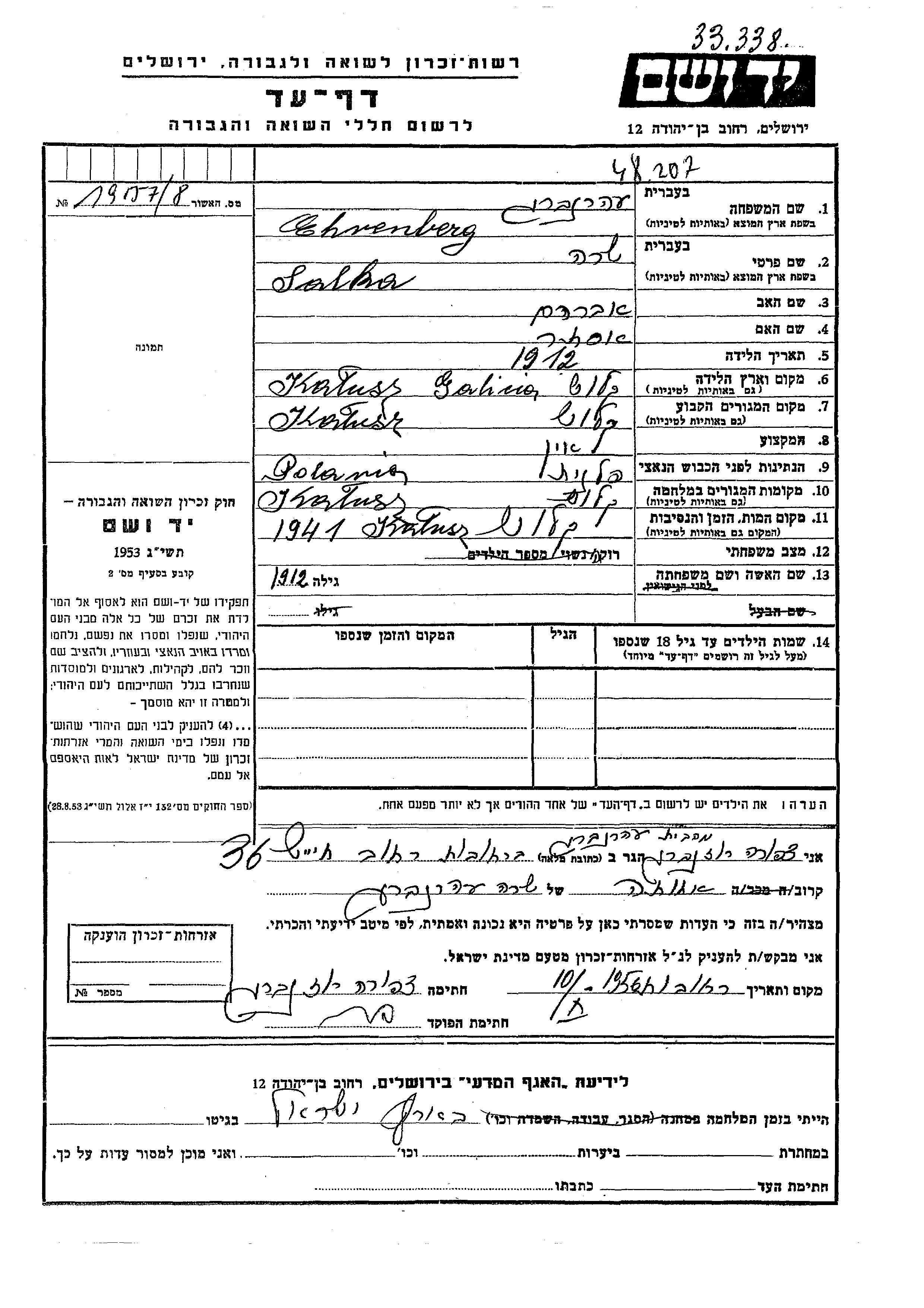 יד ושם - המפעל להנצחת השמות בדפי עד