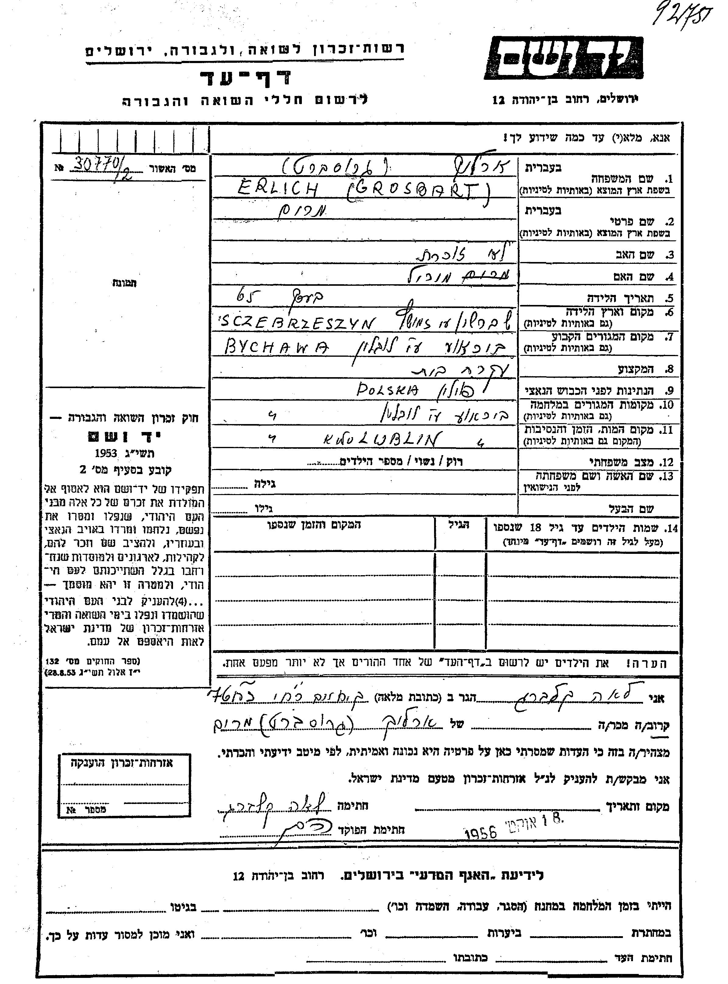 Erlich מרים Bychawa, פולין דף-עד