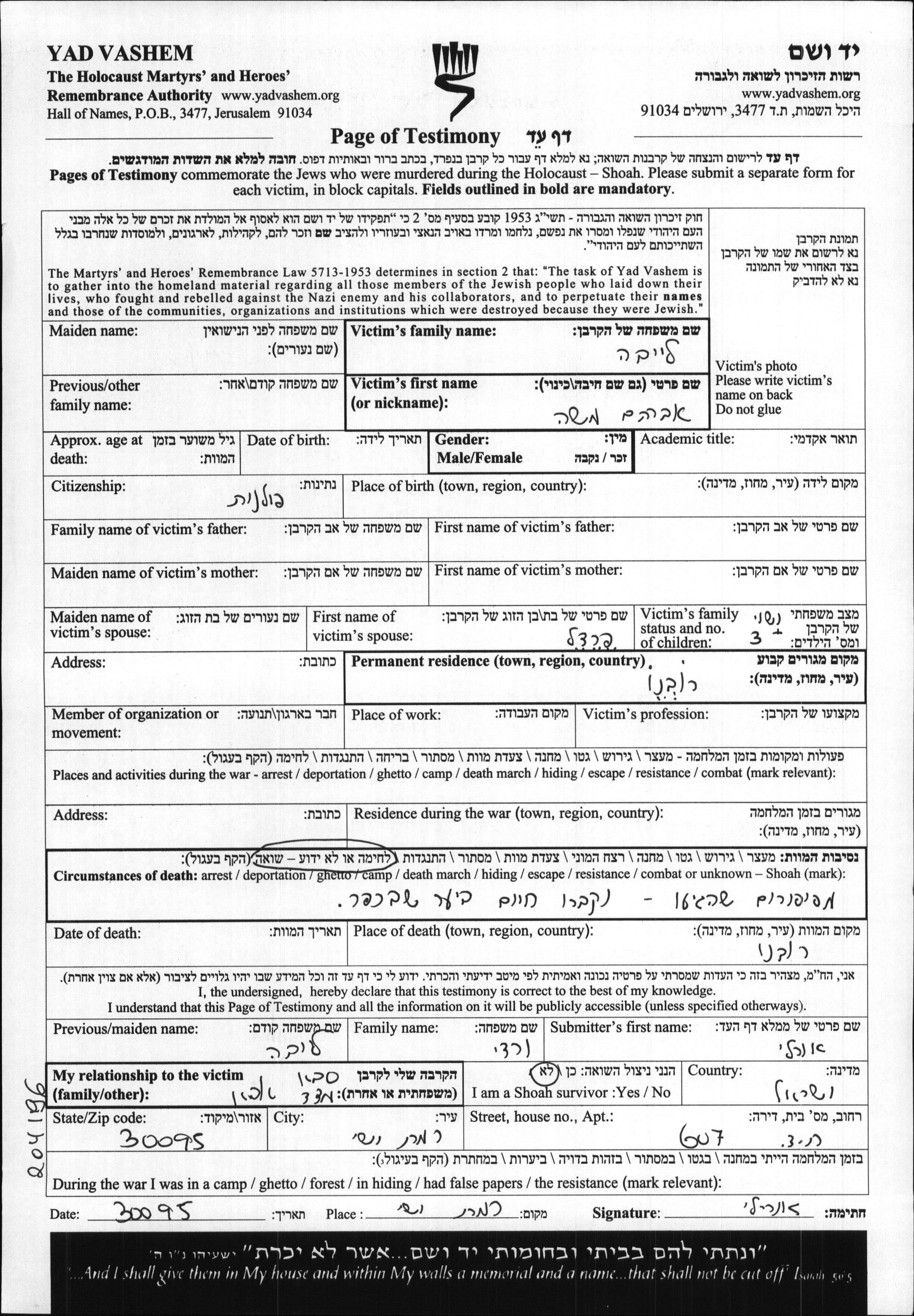 אברהם משה נרצח בשואה. מקום המוות: Rovno שבפולין.