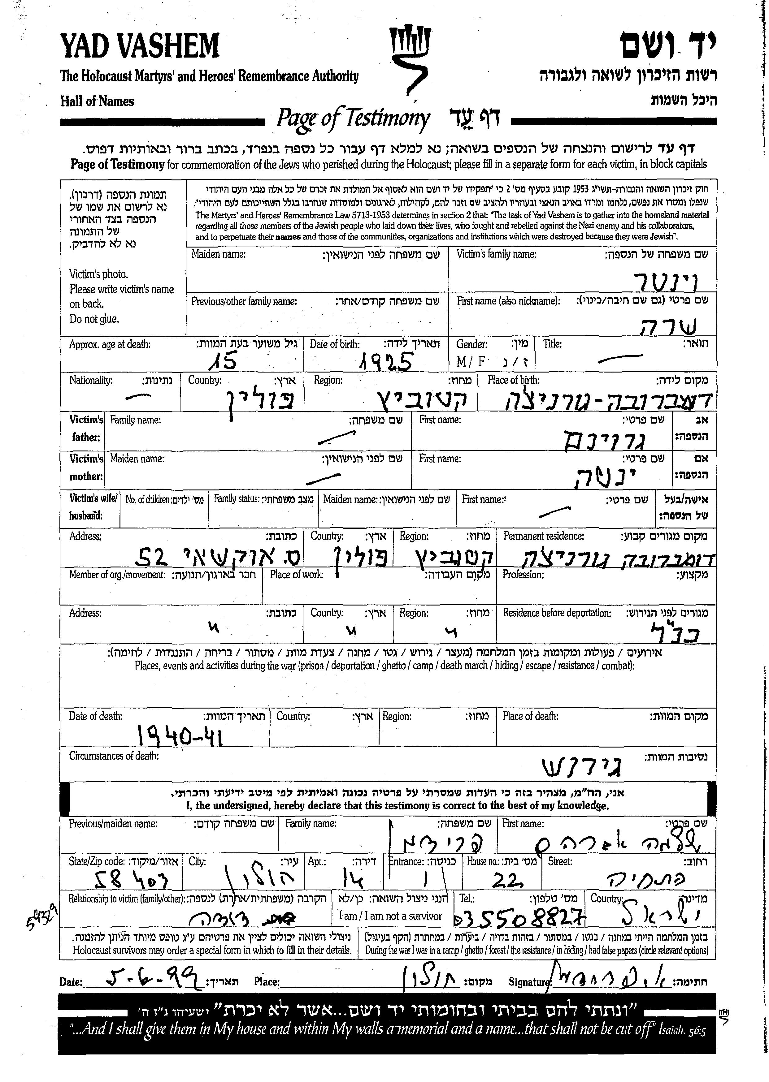 חיפוש שם מוסר דף העד. חיפוש לפי כל שם פרטי, כולל כינוי או שם חיבה
