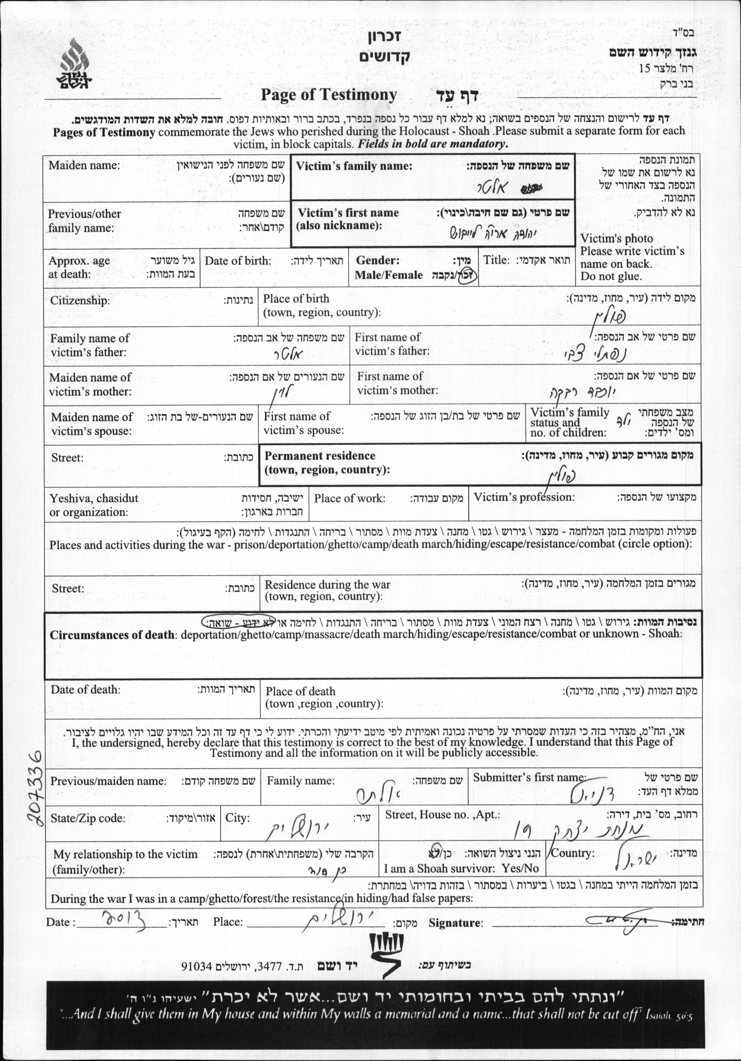 יד ושם - המפעל להנצחת השמות בדפי עד