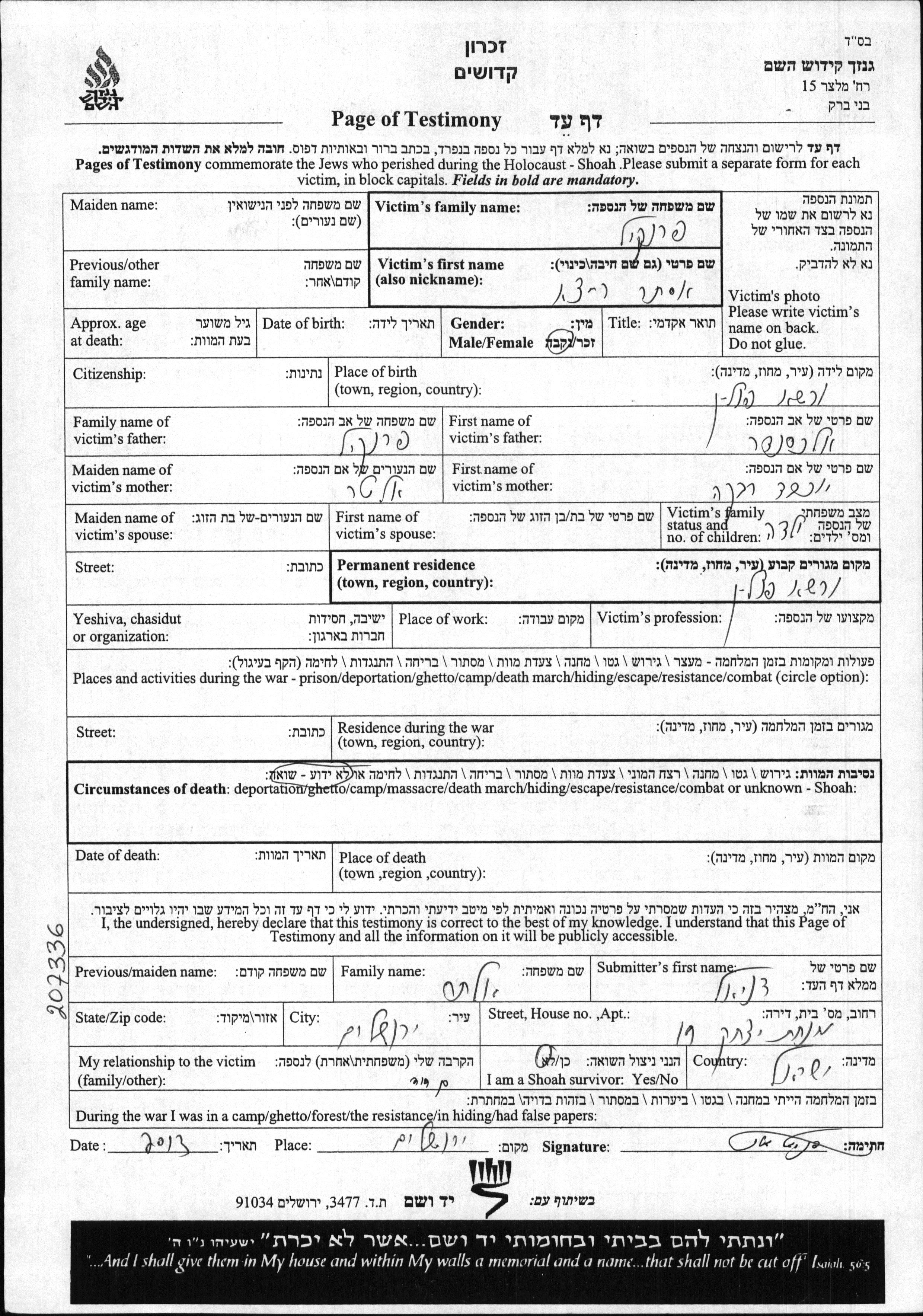 יד ושם - המפעל להנצחת השמות בדפי עד
