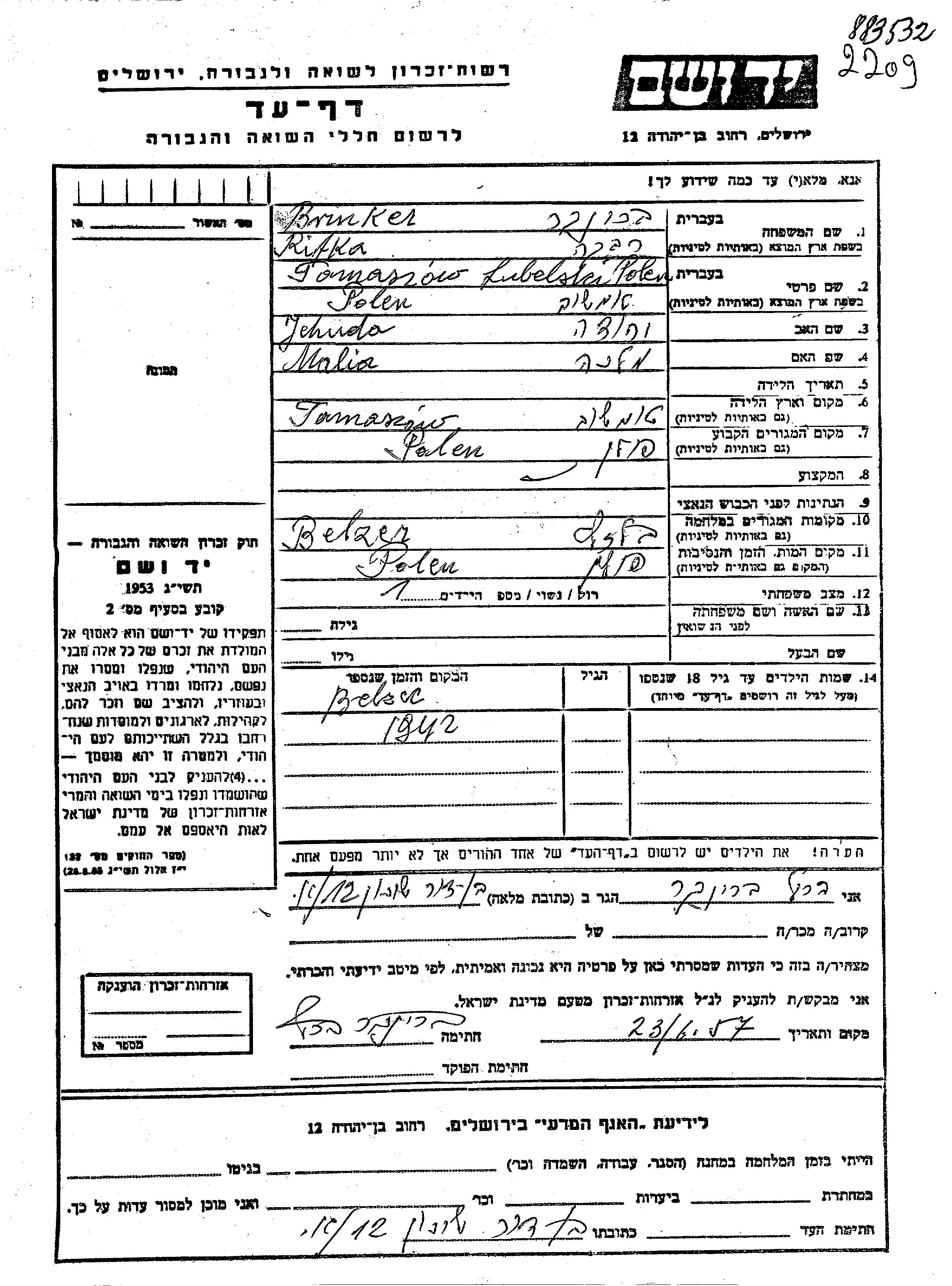 יד ושם - המפעל להנצחת השמות בדפי עד
