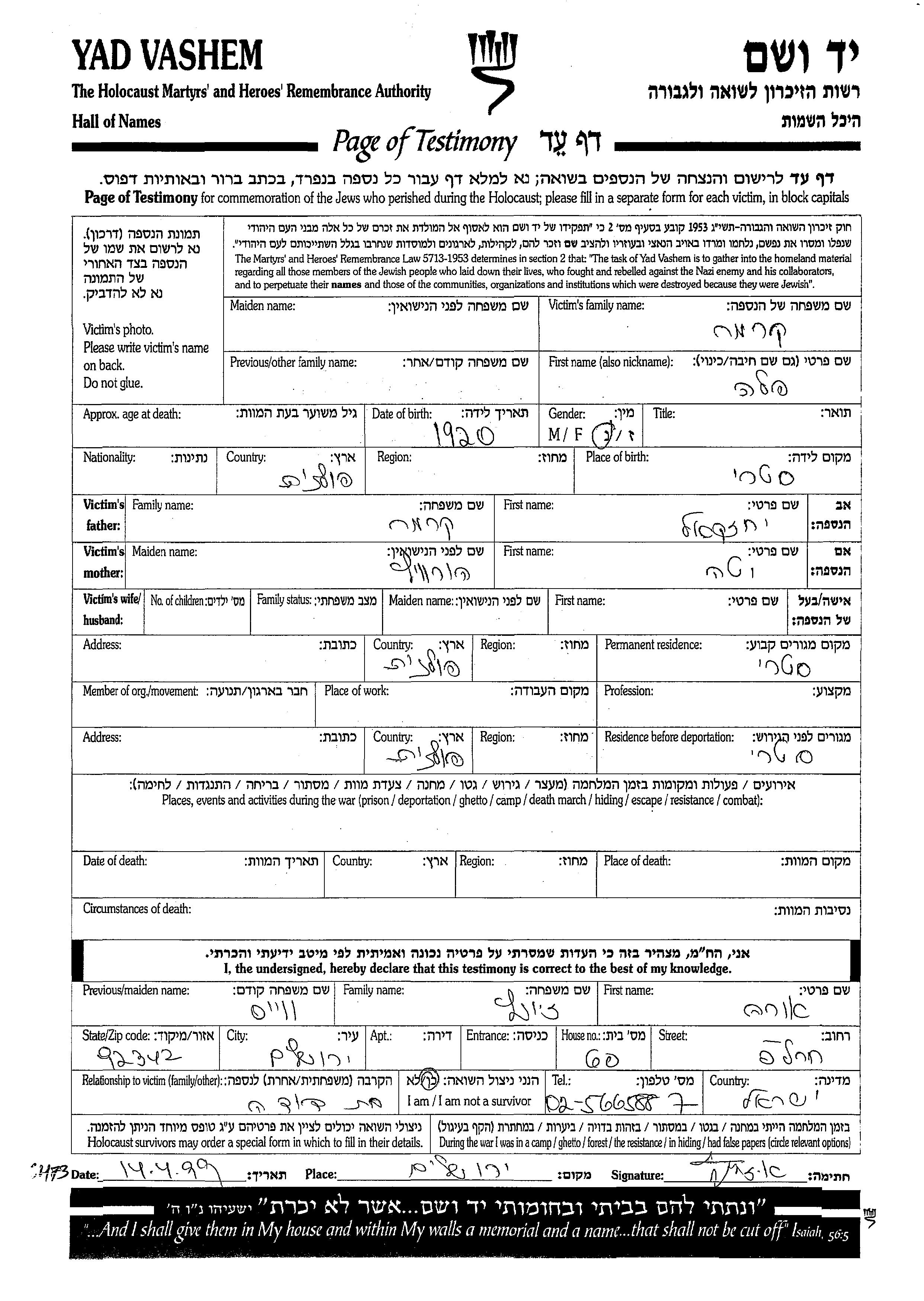 עיר/כפר, גטו/מחנה או אתר רצח או מחוז/אזור או מדינה. שם מקום ניתן לחפש רק בא-ב לטיני.