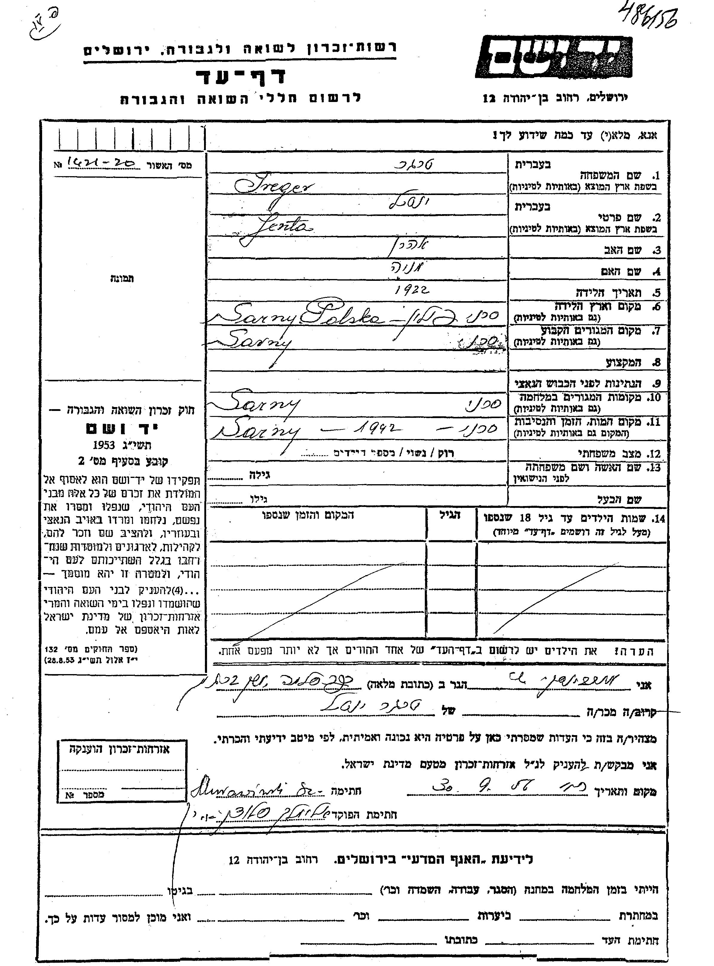טרגר Jenta 1922 Sarny, פולין דף-עד
