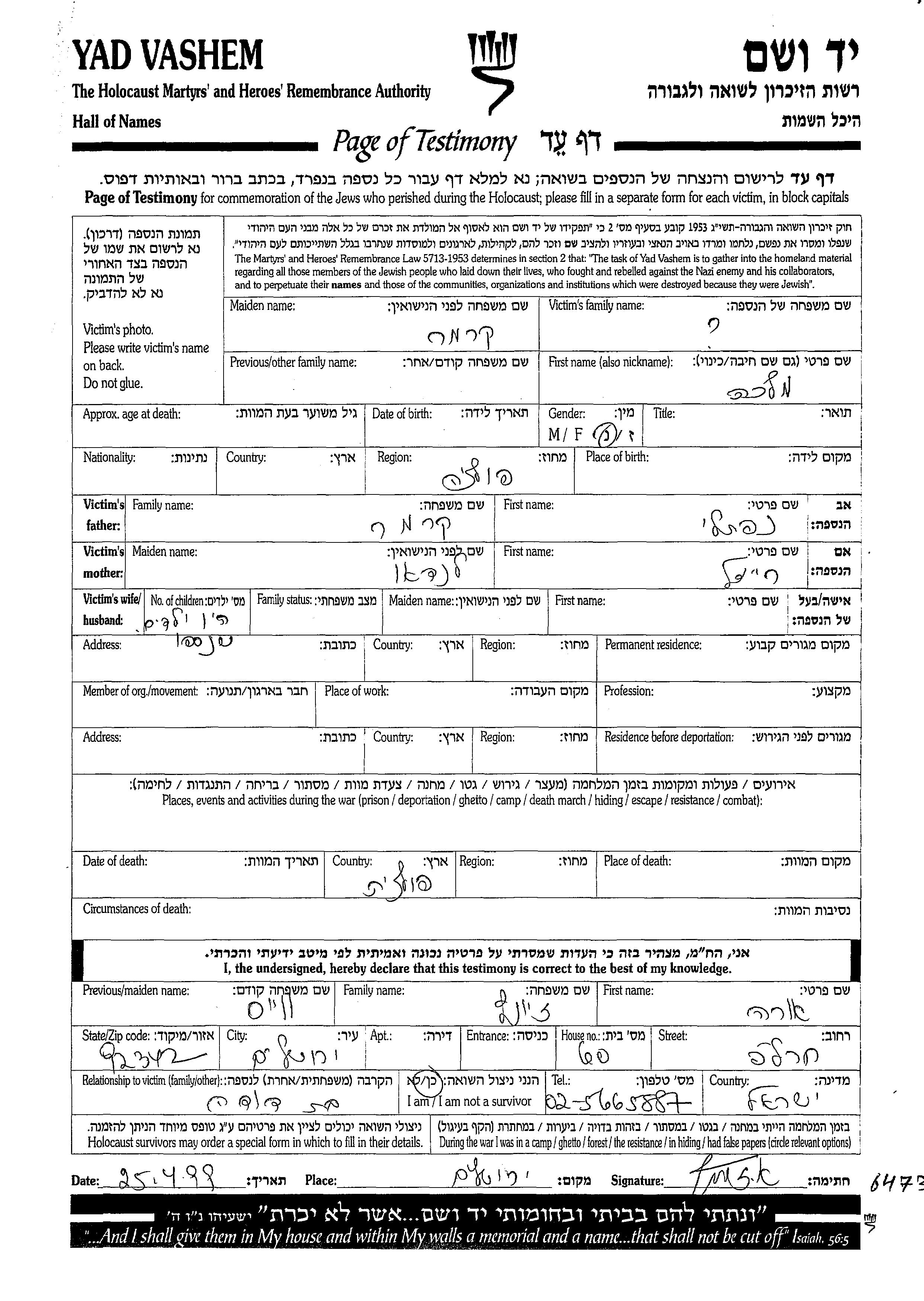 יד ושם - המפעל להנצחת השמות בדפי עד