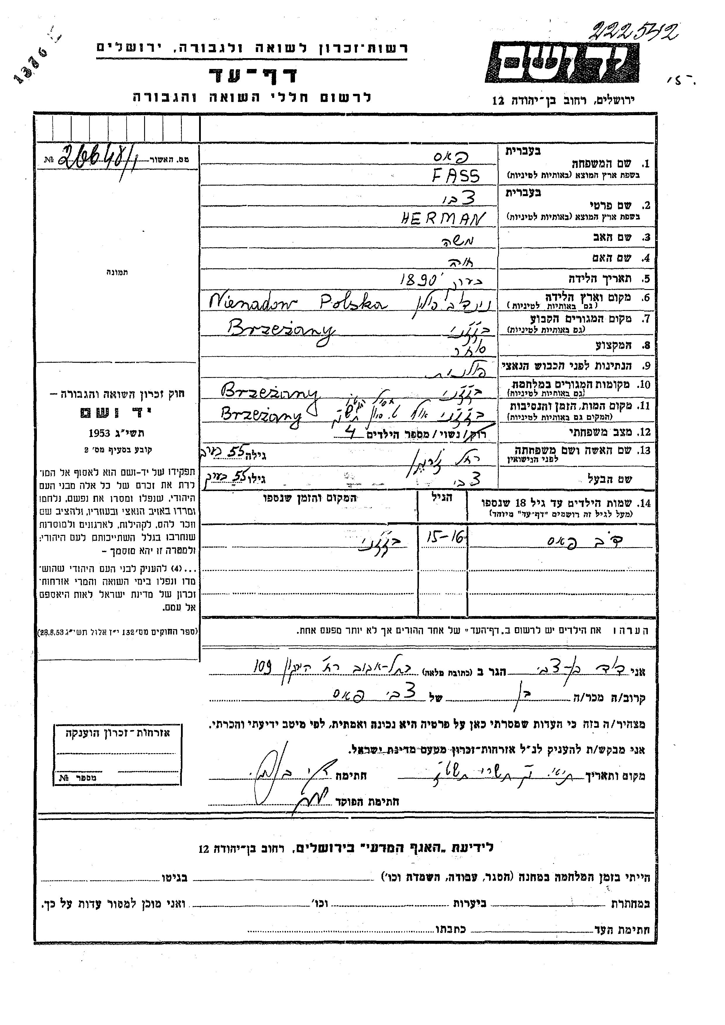 Fass הרמן צבי 1890 Brzeżany, פולין דף-עד