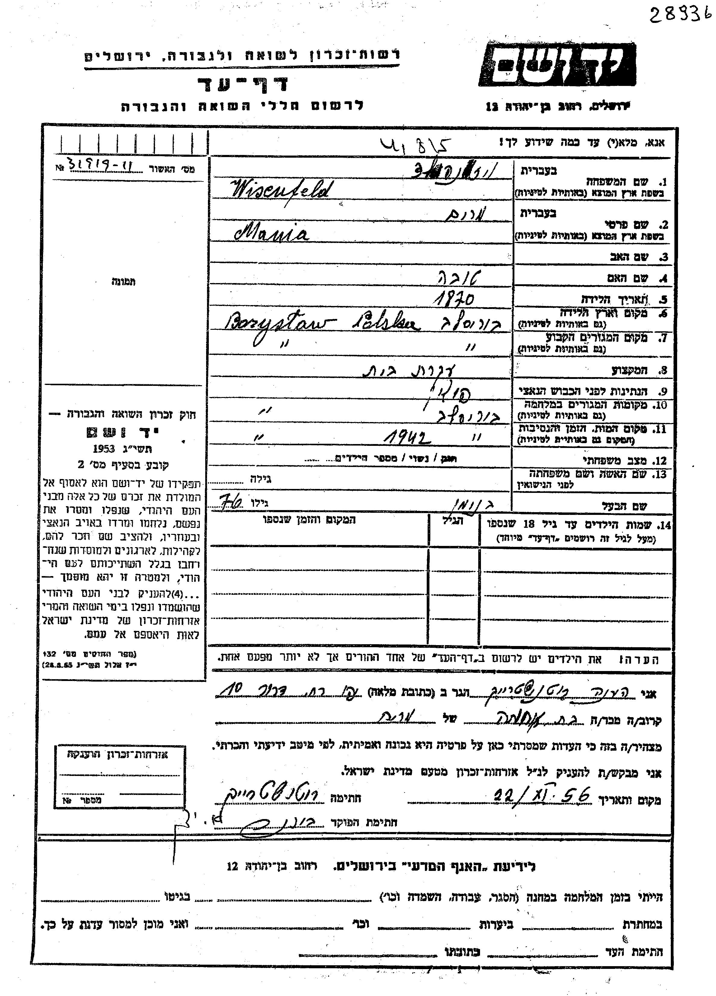 Wisenfeld מניה מרים 1870 Boryslaw, פולין דף-עד
