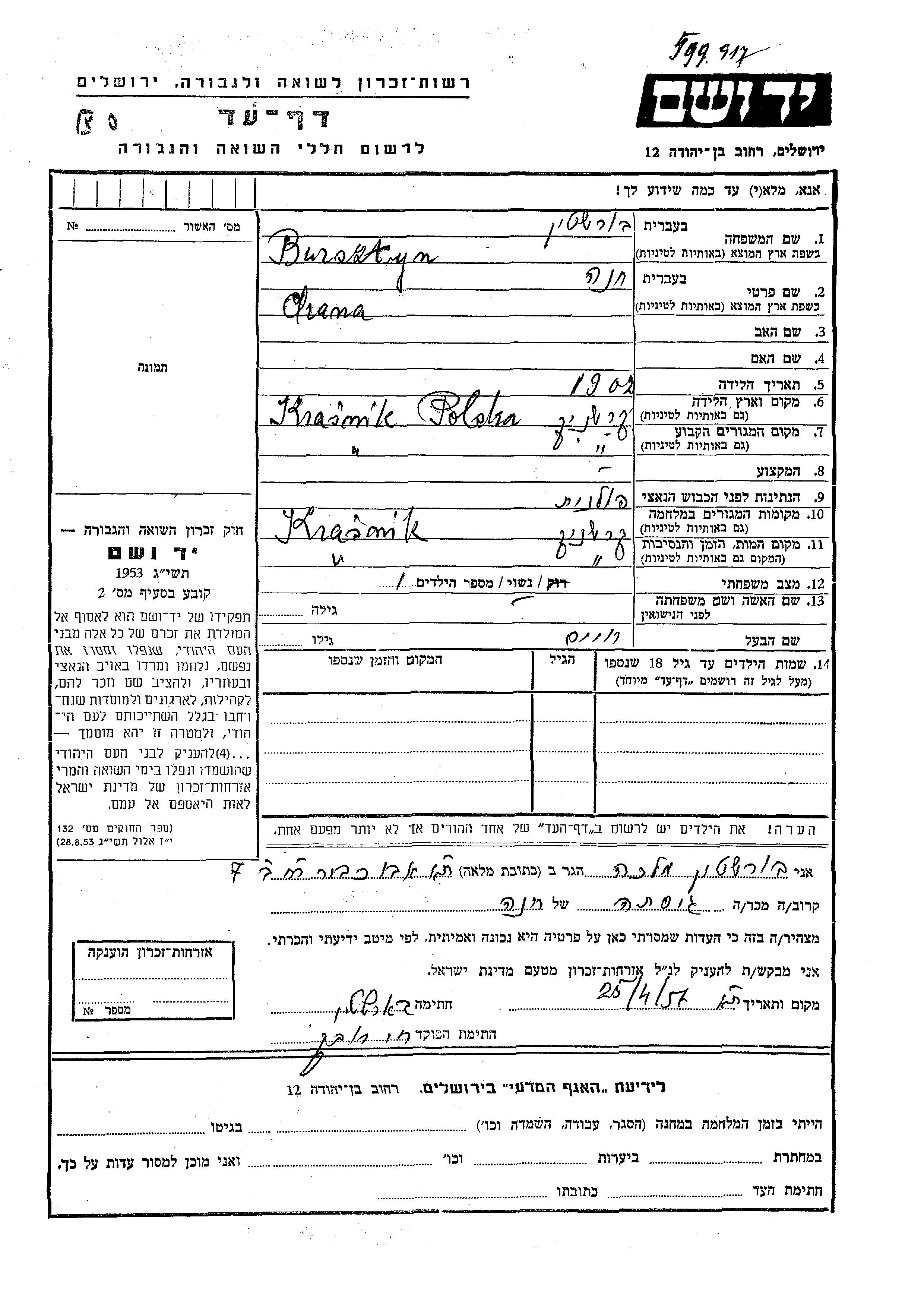 יד ושם - המפעל להנצחת השמות בדפי עד