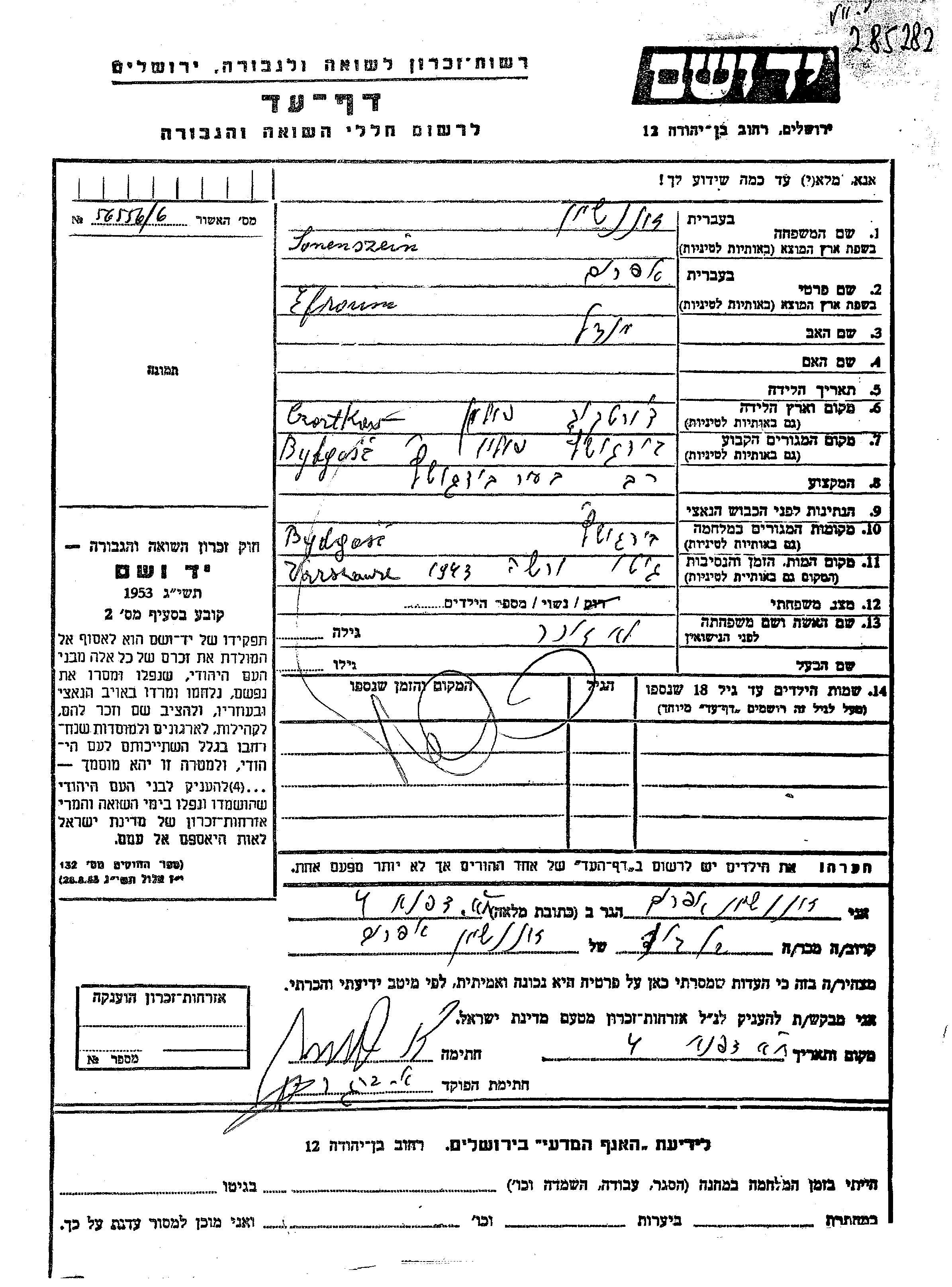 Sonenszein אפרים Bydgoszcz, פולין דף-עד