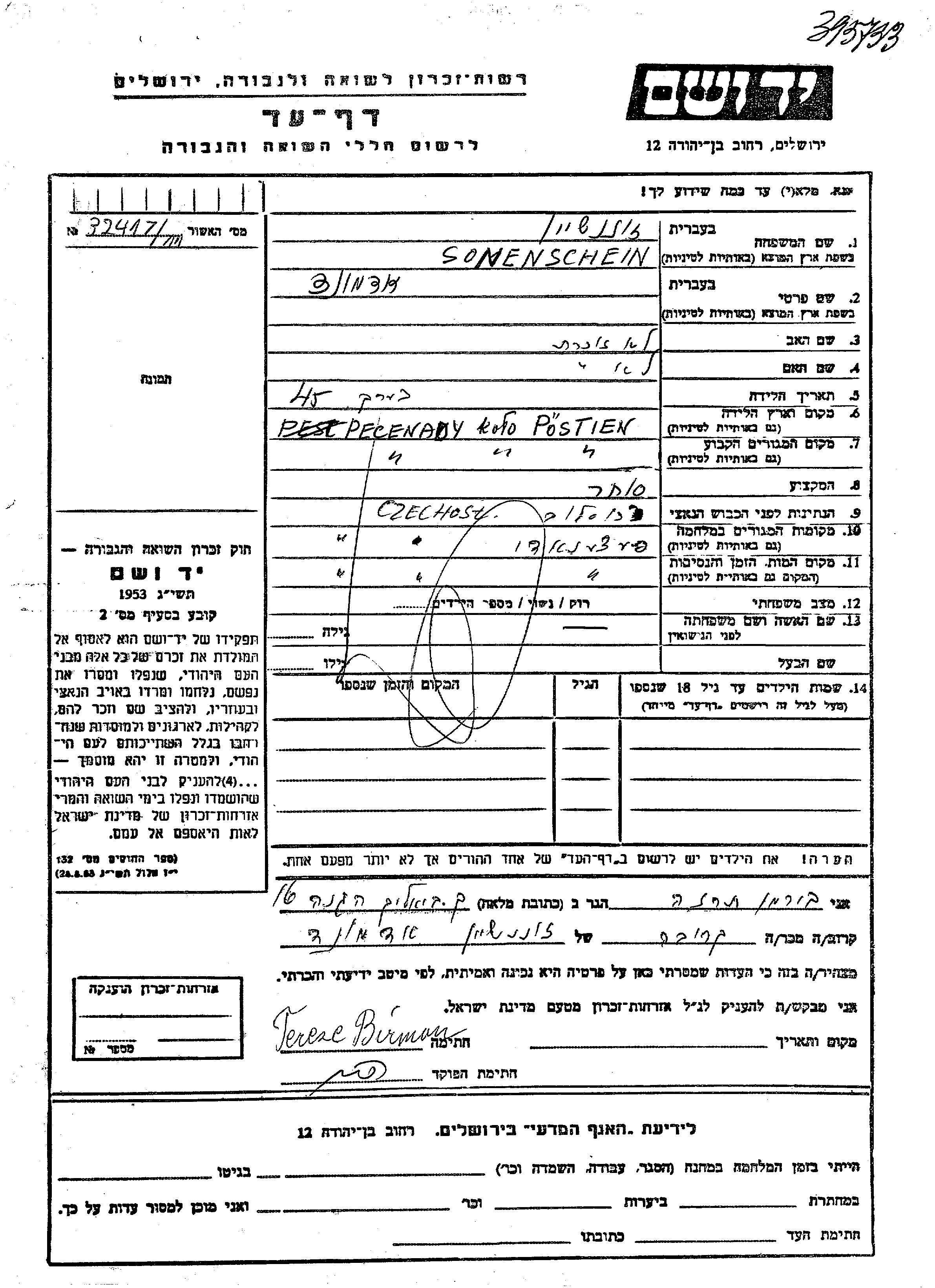 Sonenschein אדמונד Pecenady, צ'כוסלובקיה דף-עד