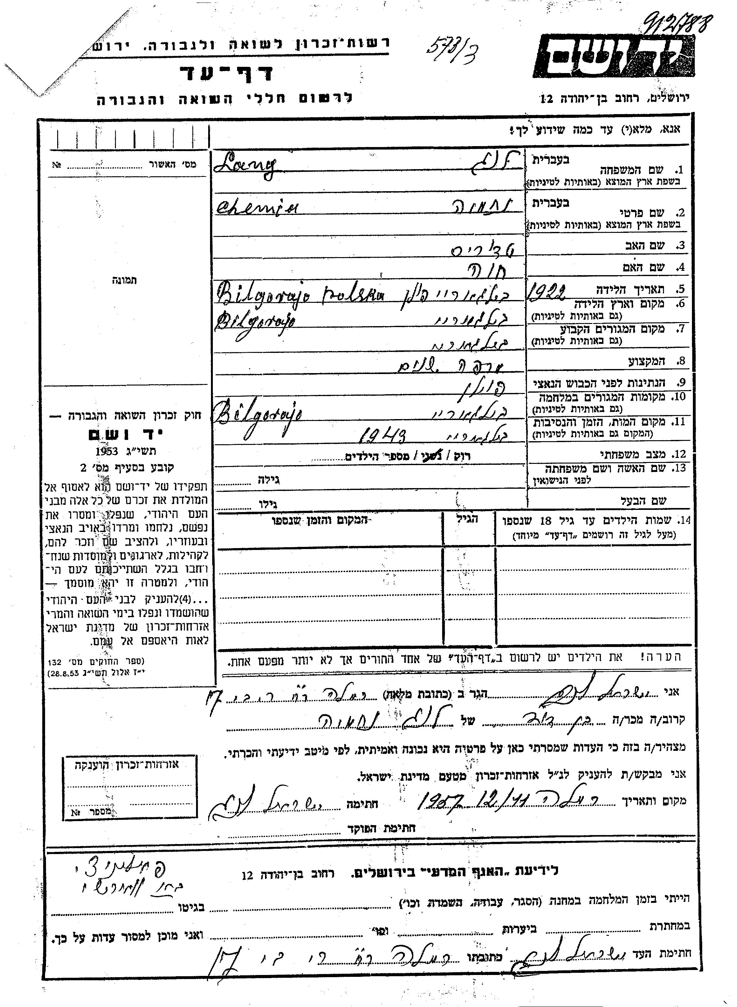יד ושם - המפעל להנצחת השמות בדפי עד