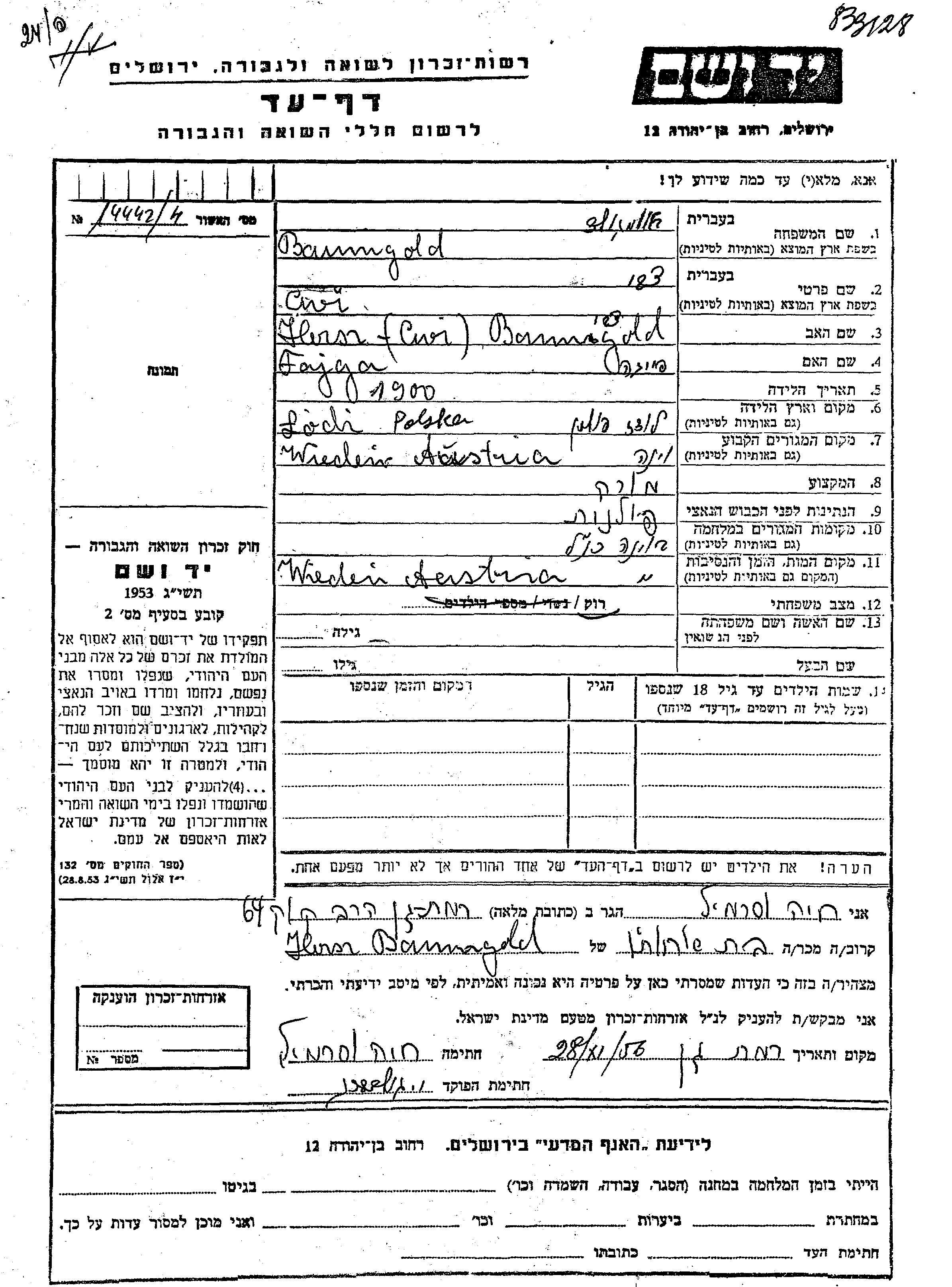 יד ושם - המפעל להנצחת השמות בדפי עד