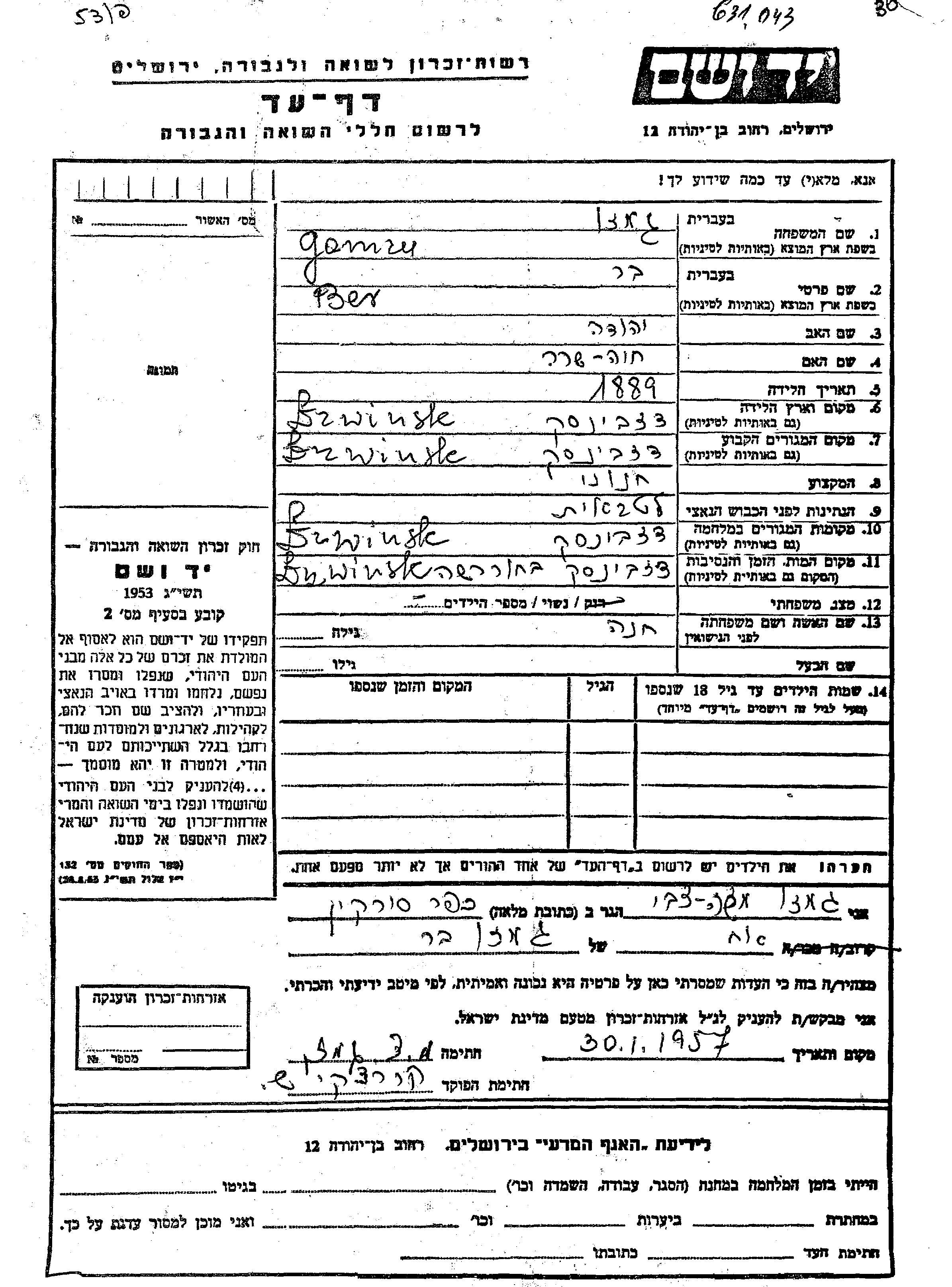יד ושם - המפעל להנצחת השמות בדפי עד