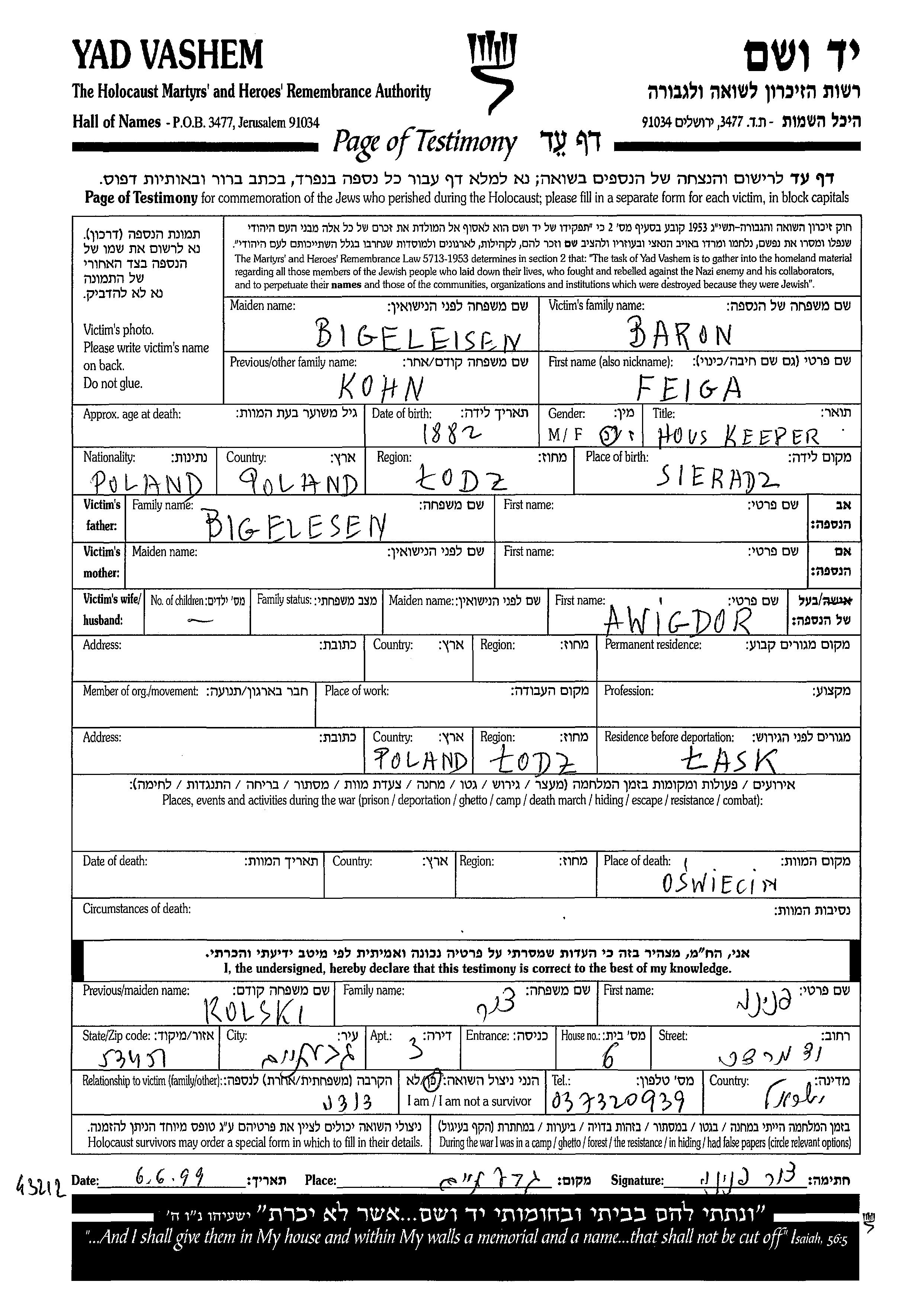 יד ושם - המפעל להנצחת השמות בדפי עד