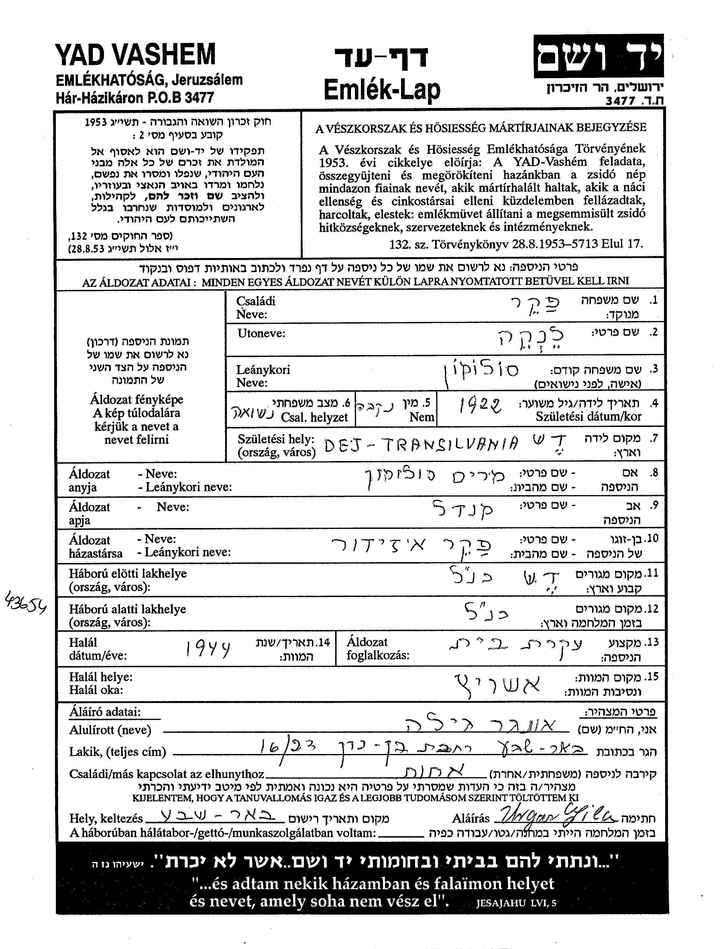 יד ושם - המפעל להנצחת השמות בדפי עד