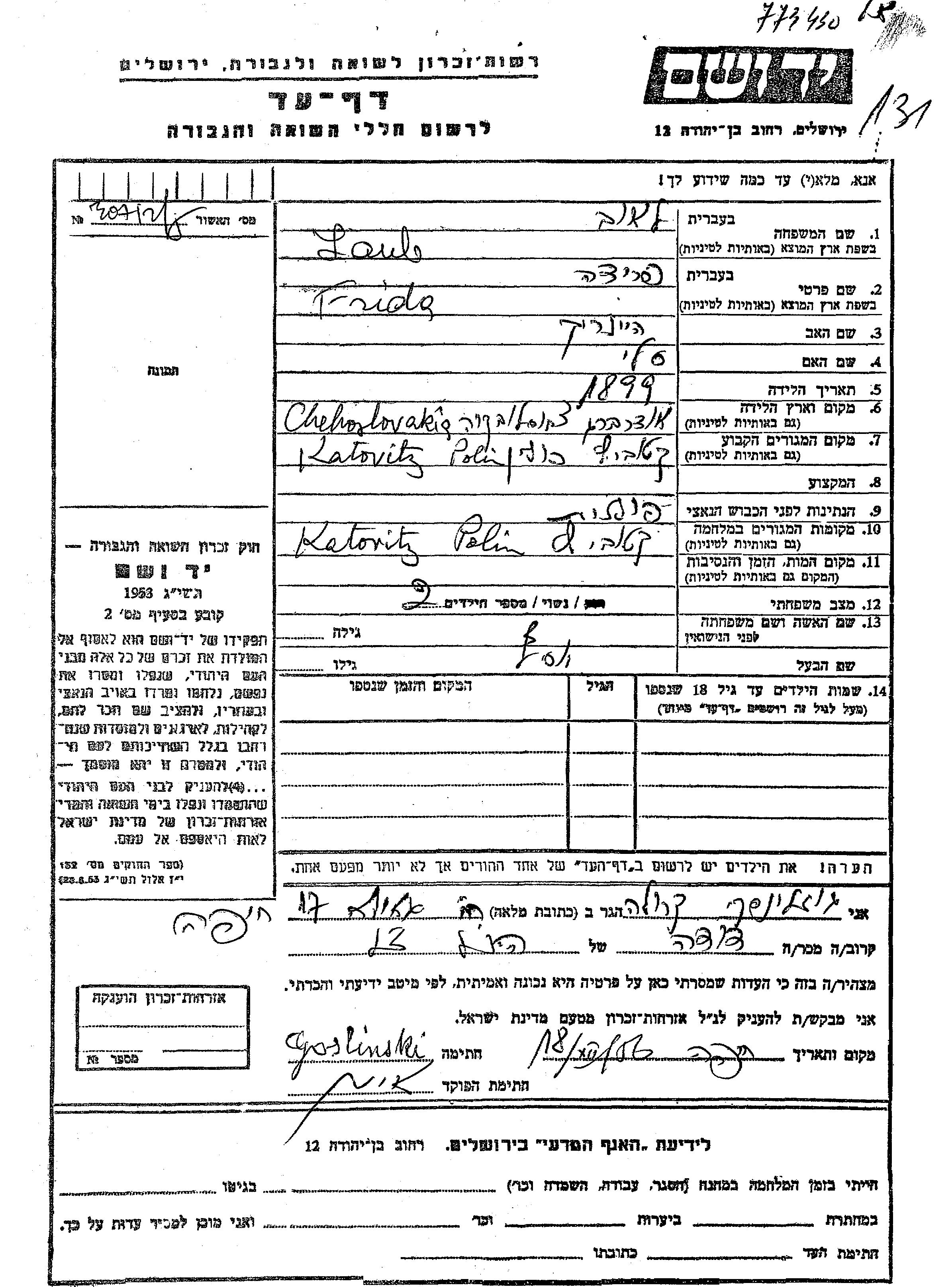 לאוב פרידה 1899 Katovitz, פולין דף-עד