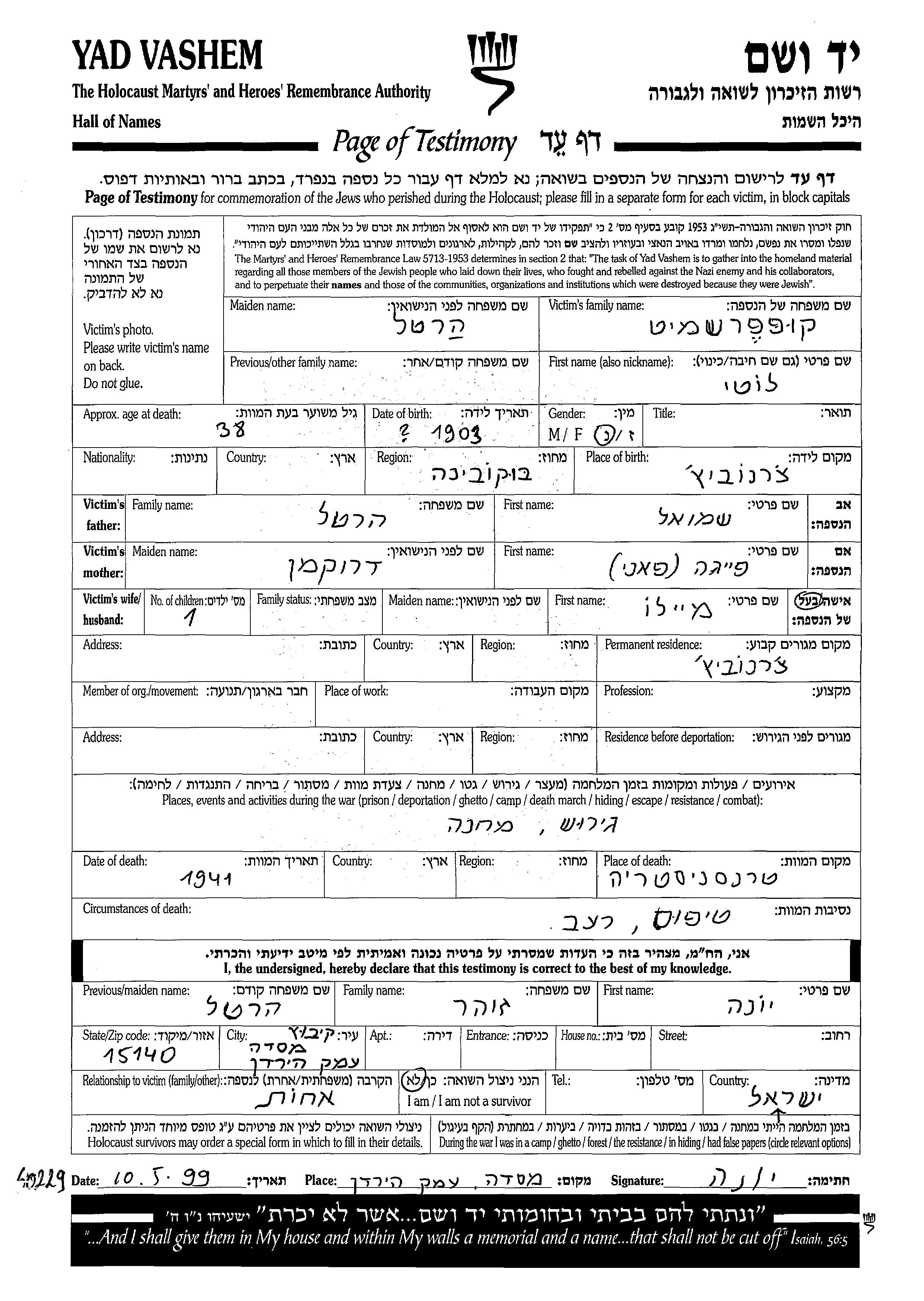 חיפוש שם מוסר דף העד. חיפוש לפי כל שם פרטי, כולל כינוי או שם חיבה