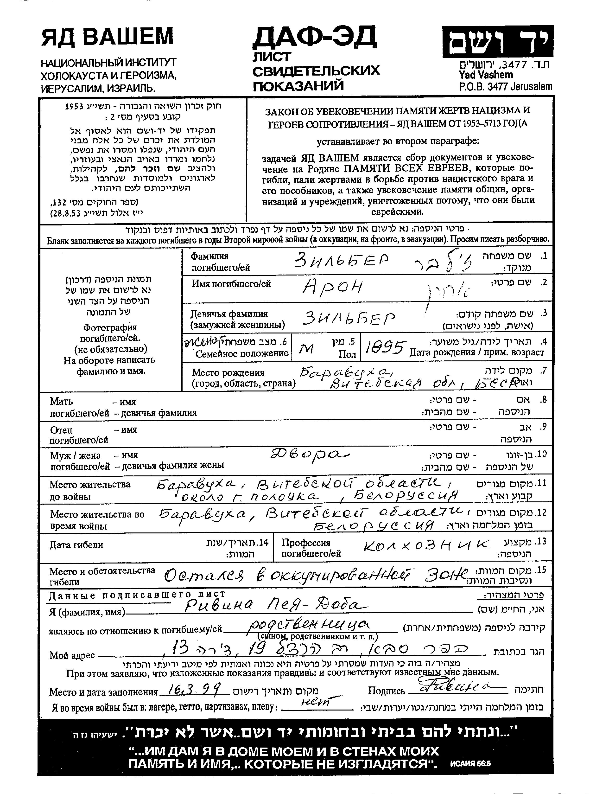 זילבר ארון 1895 Borovukha, ביאלורוסיה (ברה"מ) דף-עד