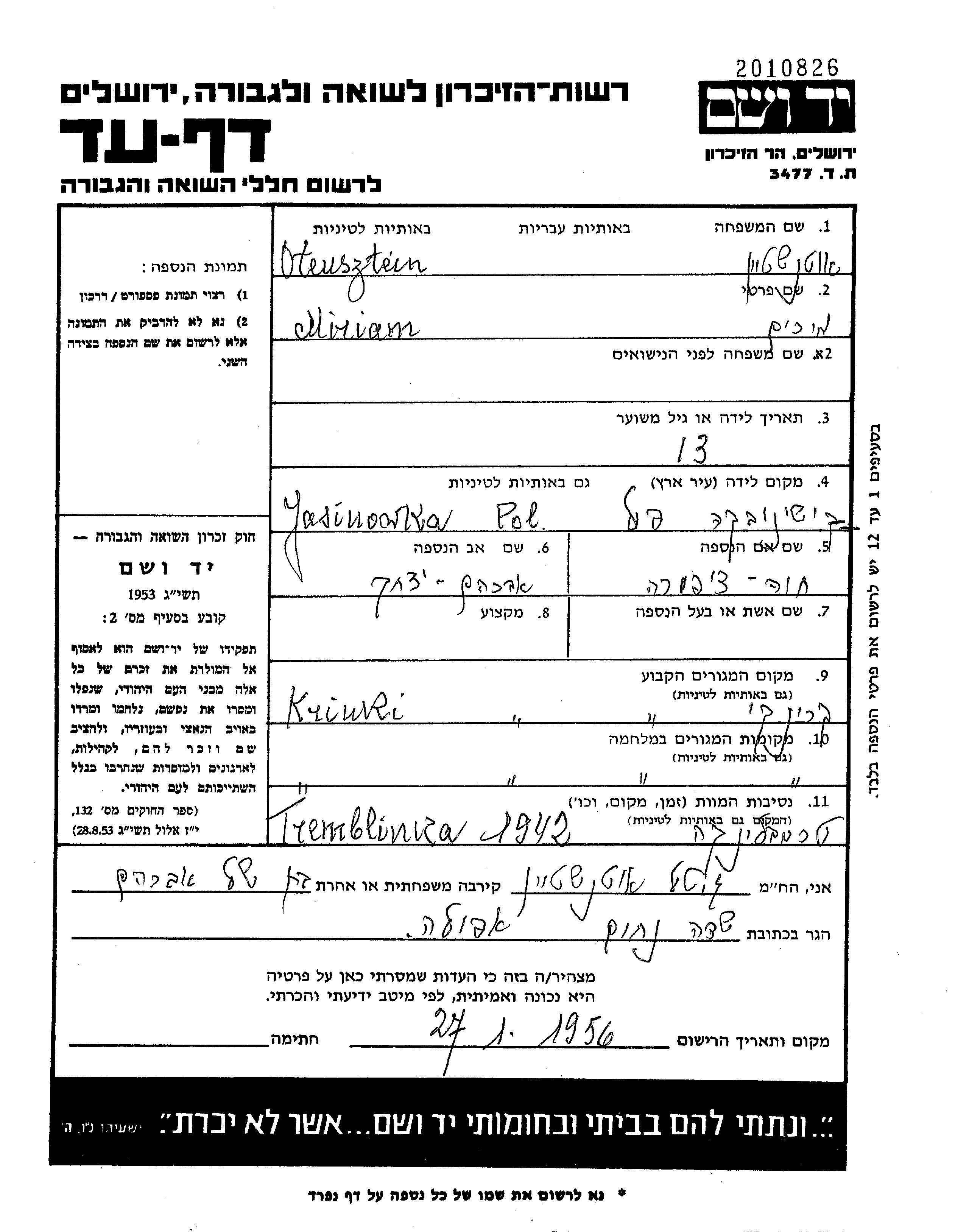 יד ושם - המפעל להנצחת השמות בדפי עד