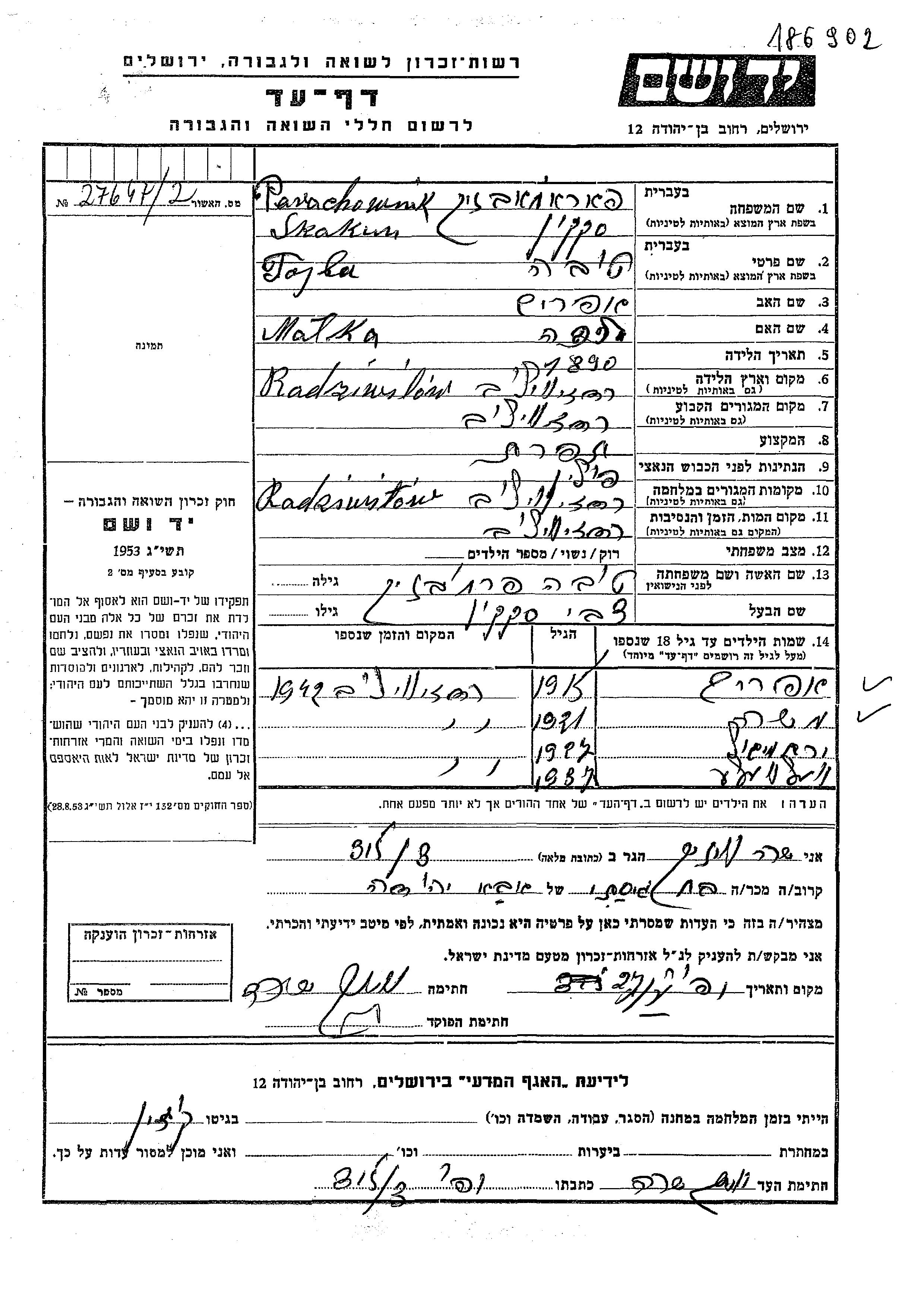 יד ושם - המפעל להנצחת השמות בדפי עד