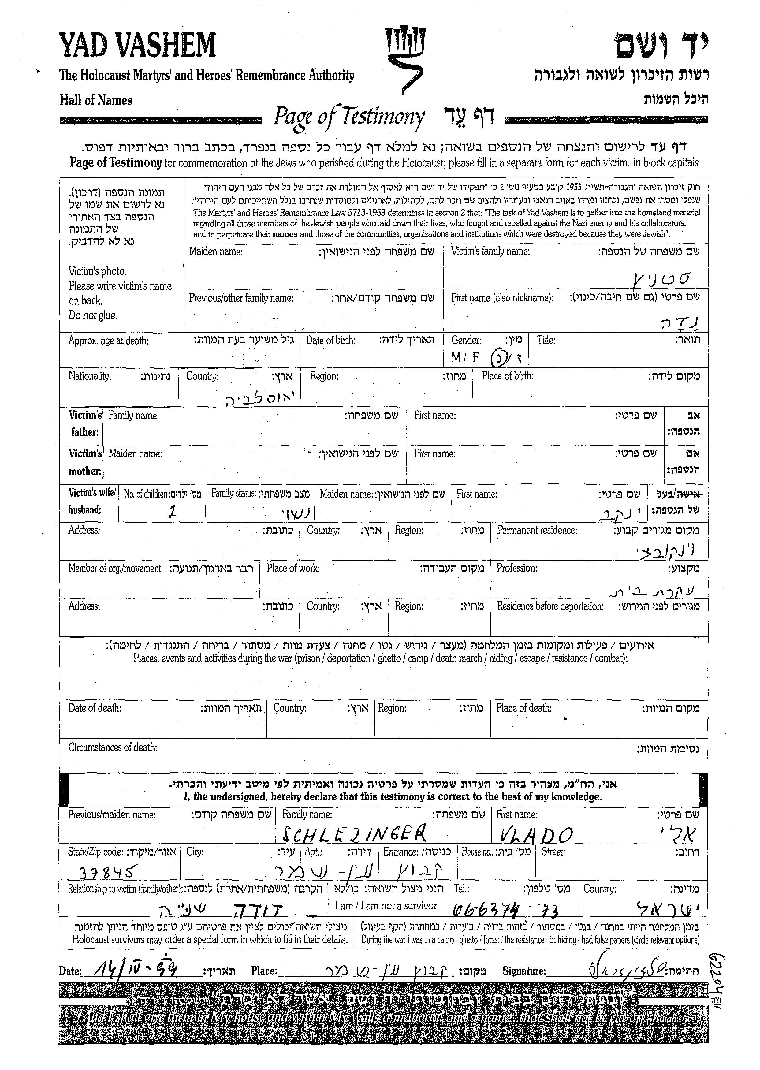 יד ושם - המפעל להנצחת השמות בדפי עד