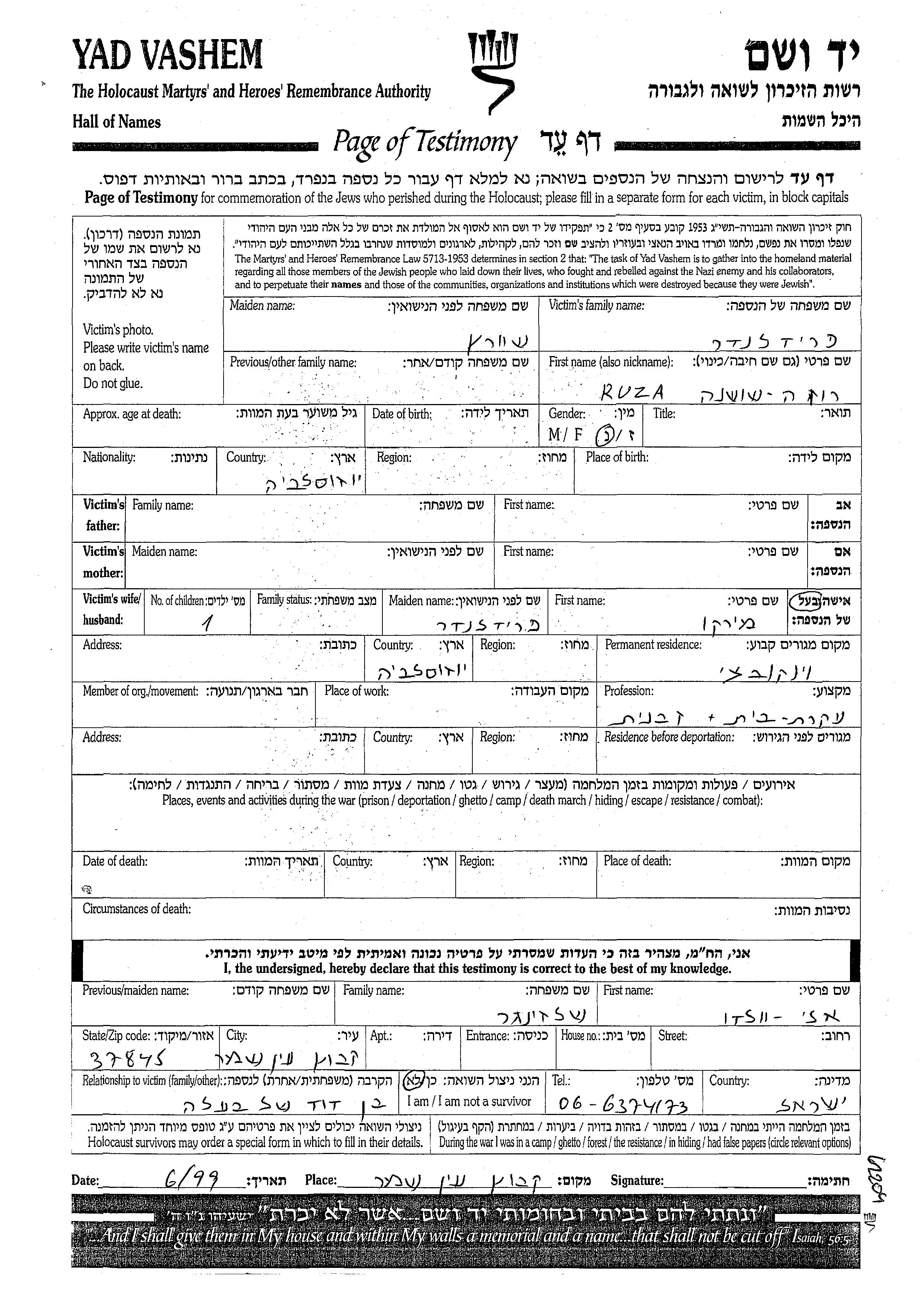 יד ושם - המפעל להנצחת השמות בדפי עד