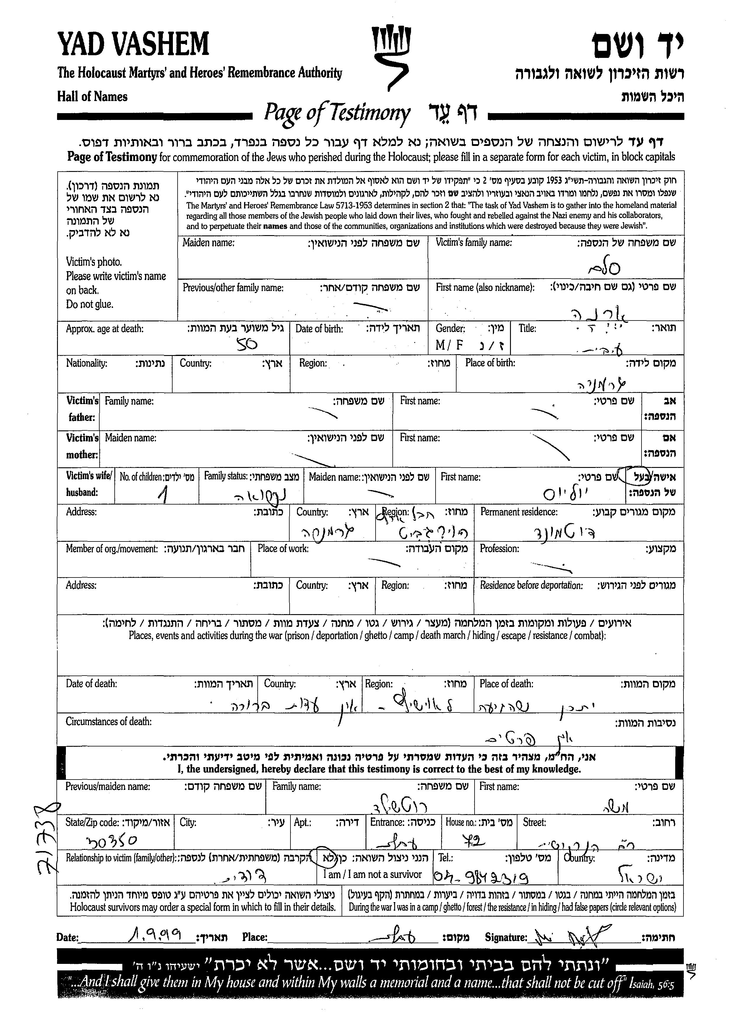 יד ושם - המפעל להנצחת השמות בדפי עד