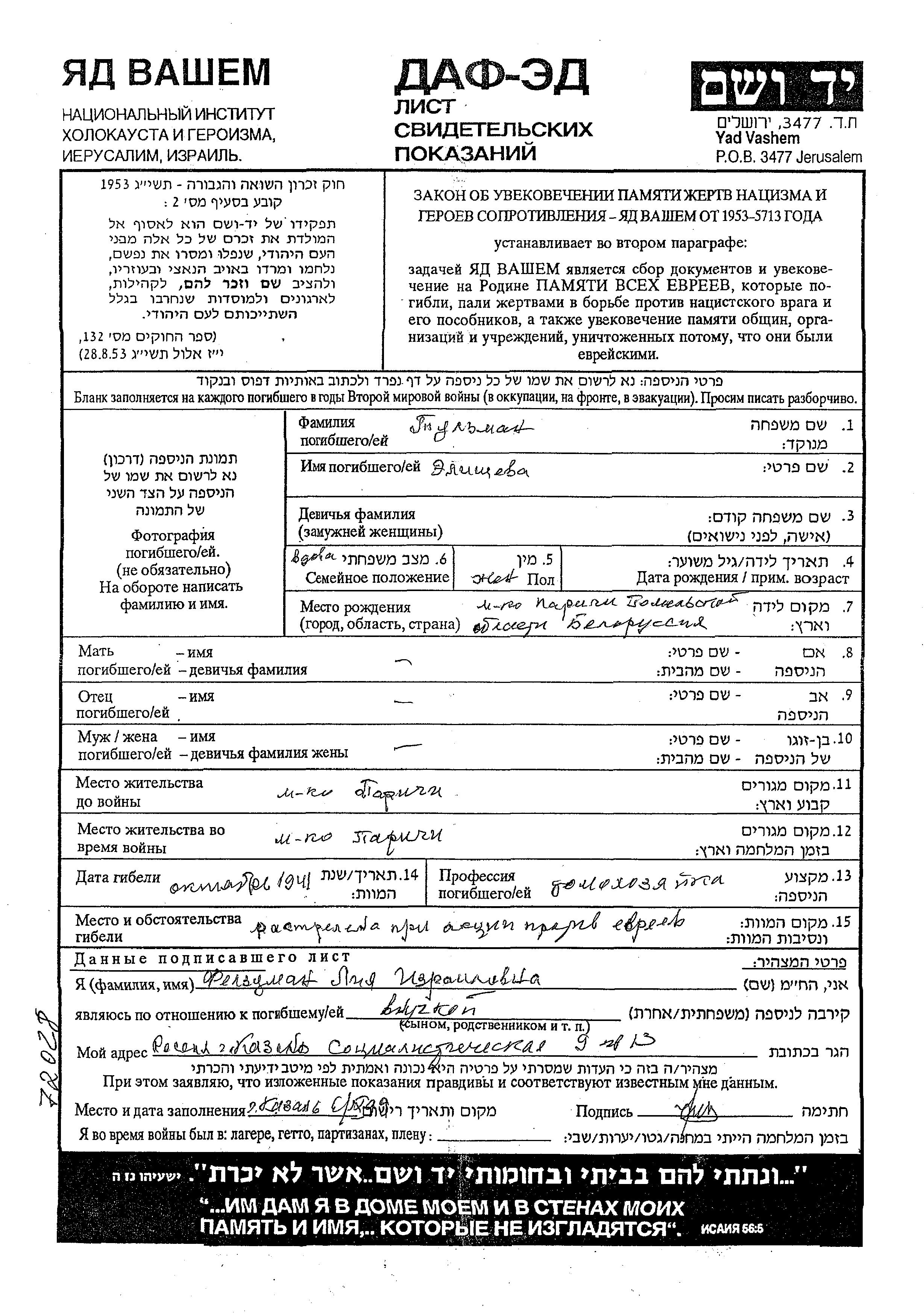 יד ושם - המפעל להנצחת השמות בדפי עד