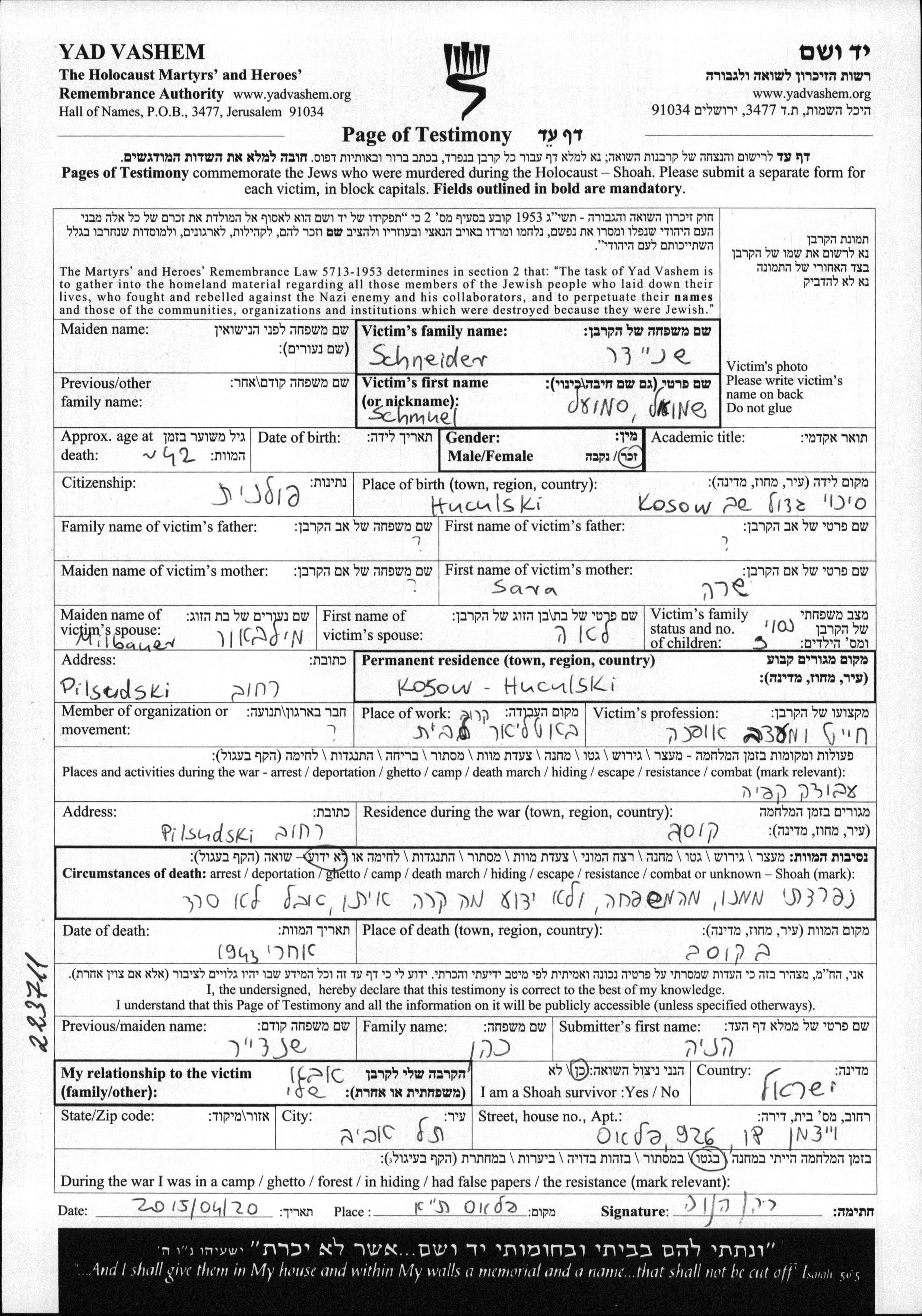 עיר/כפר, גטו/מחנה או אתר רצח או מחוז/אזור או מדינה. שם מקום ניתן לחפש רק בא-ב לטיני.