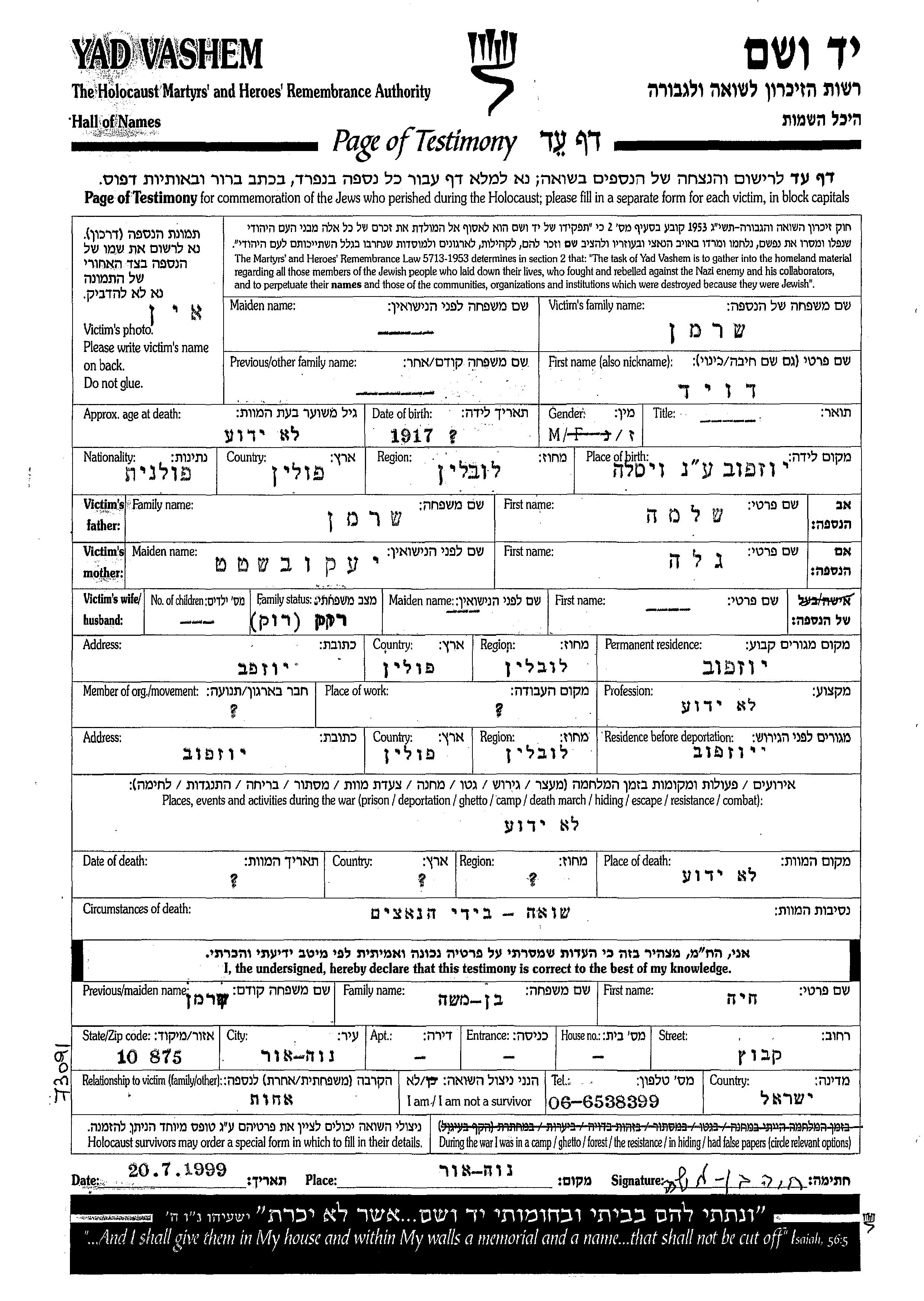 יד ושם - המפעל להנצחת השמות בדפי עד