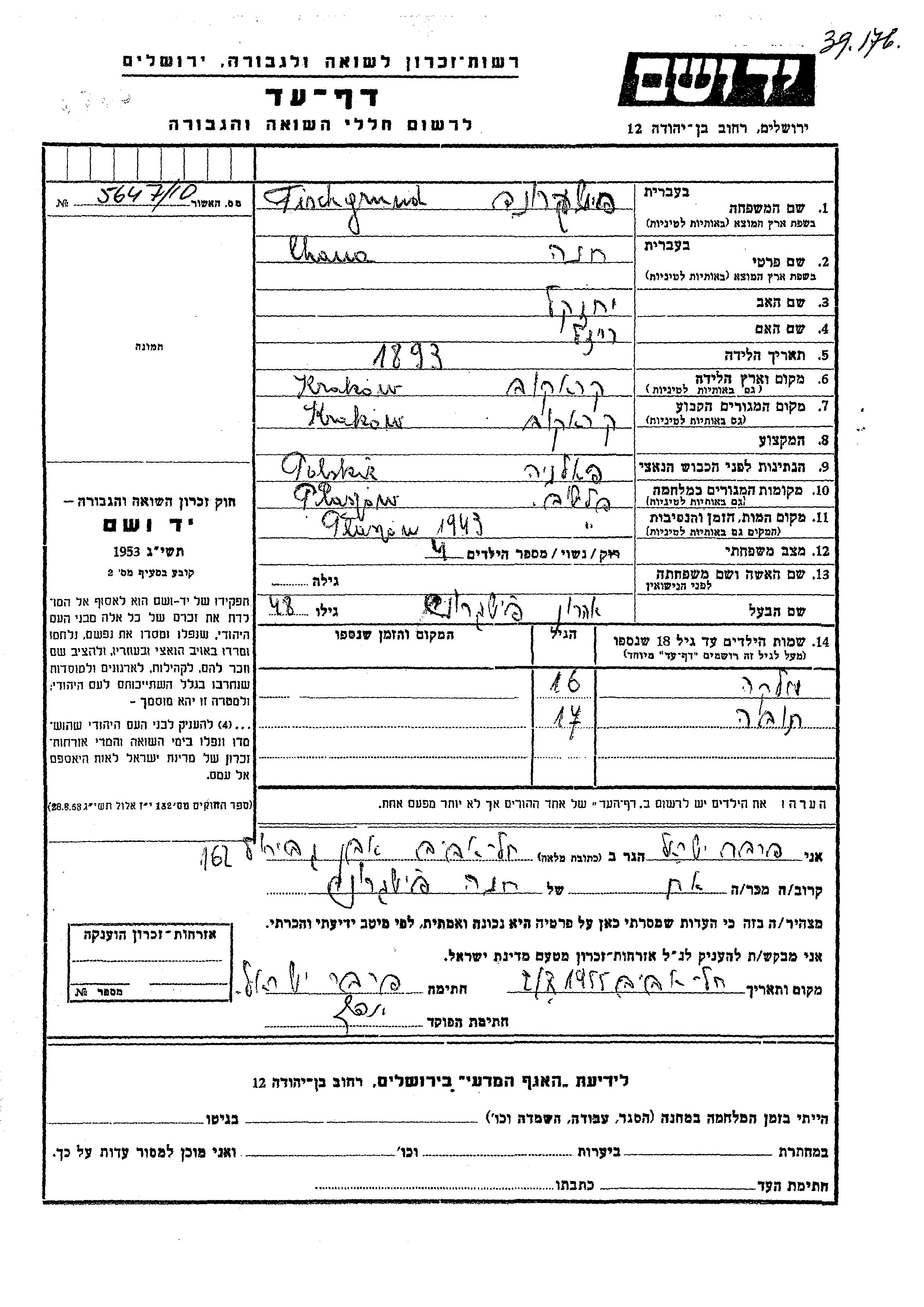 חיפוש שם מוסר דף העד. חיפוש לפי כל שם פרטי, כולל כינוי או שם חיבה