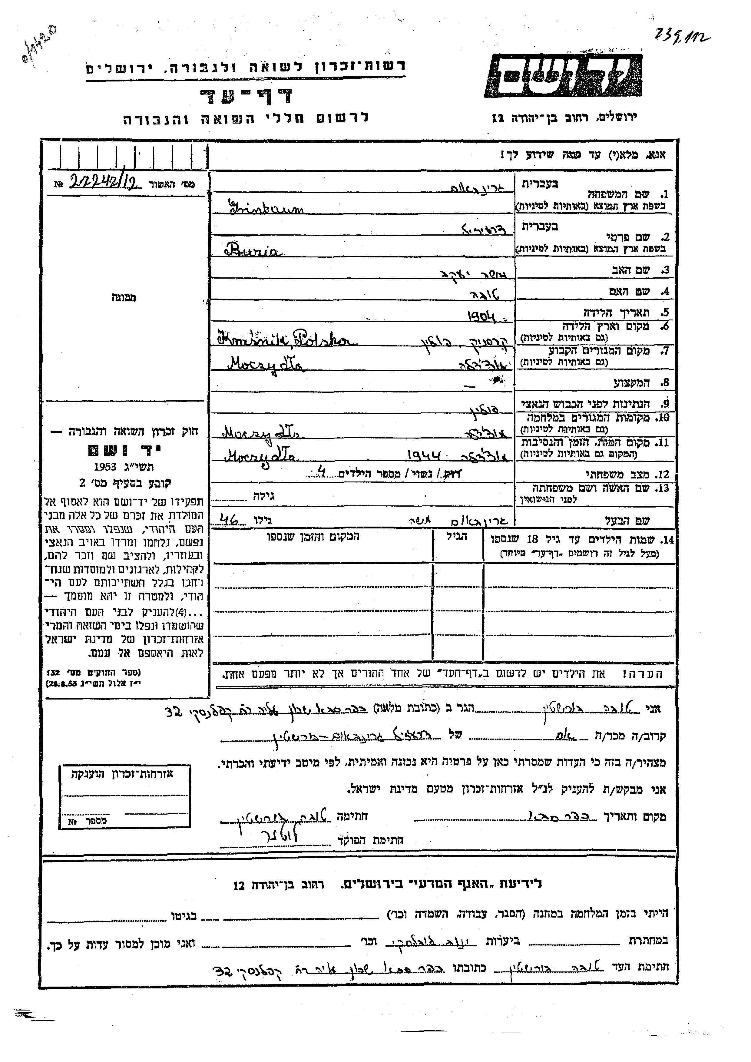 חיפוש שם מוסר דף העד. חיפוש לפי כל שם פרטי, כולל כינוי או שם חיבה