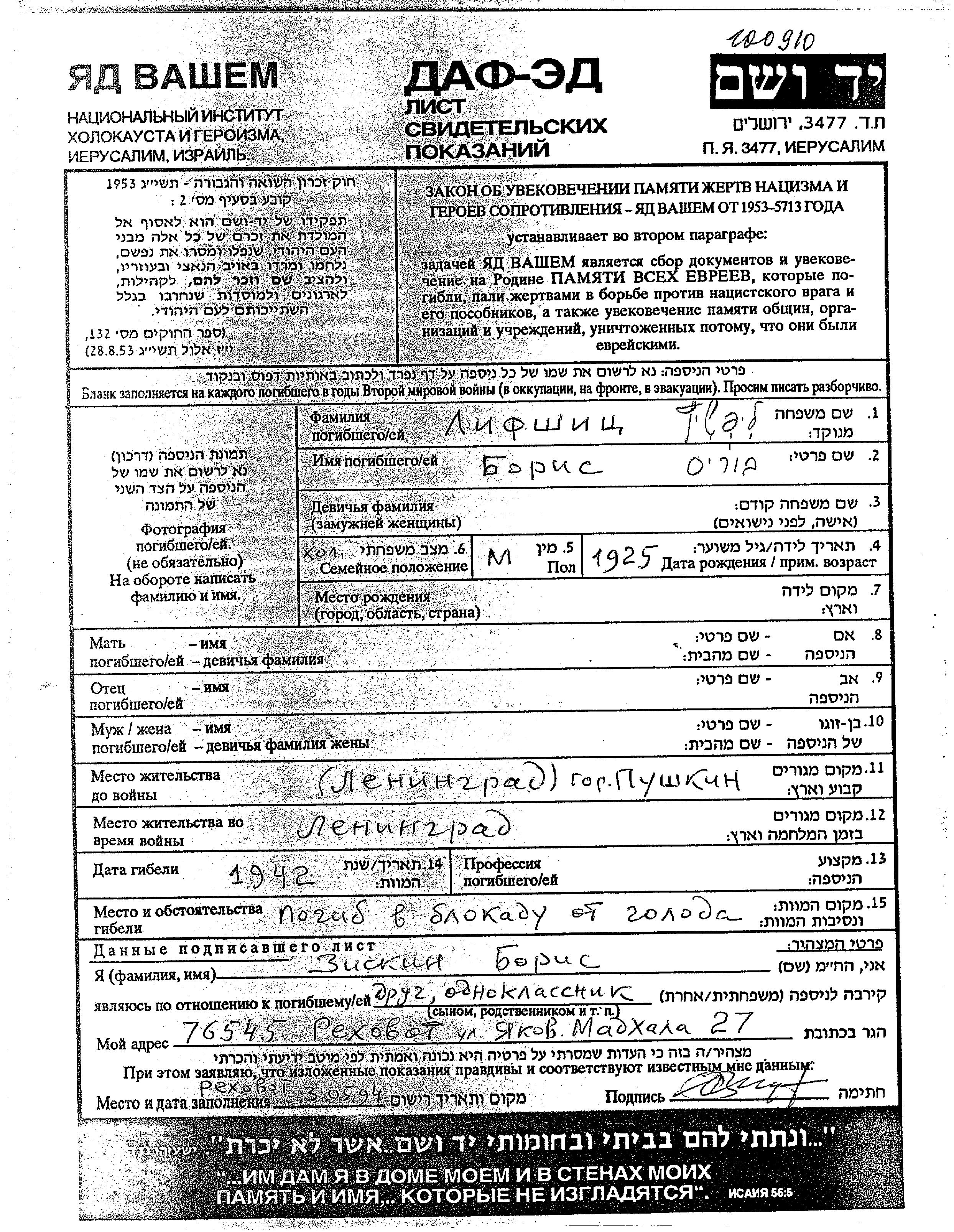 חיפוש שם מוסר דף העד. חיפוש לפי כל שם פרטי, כולל כינוי או שם חיבה
