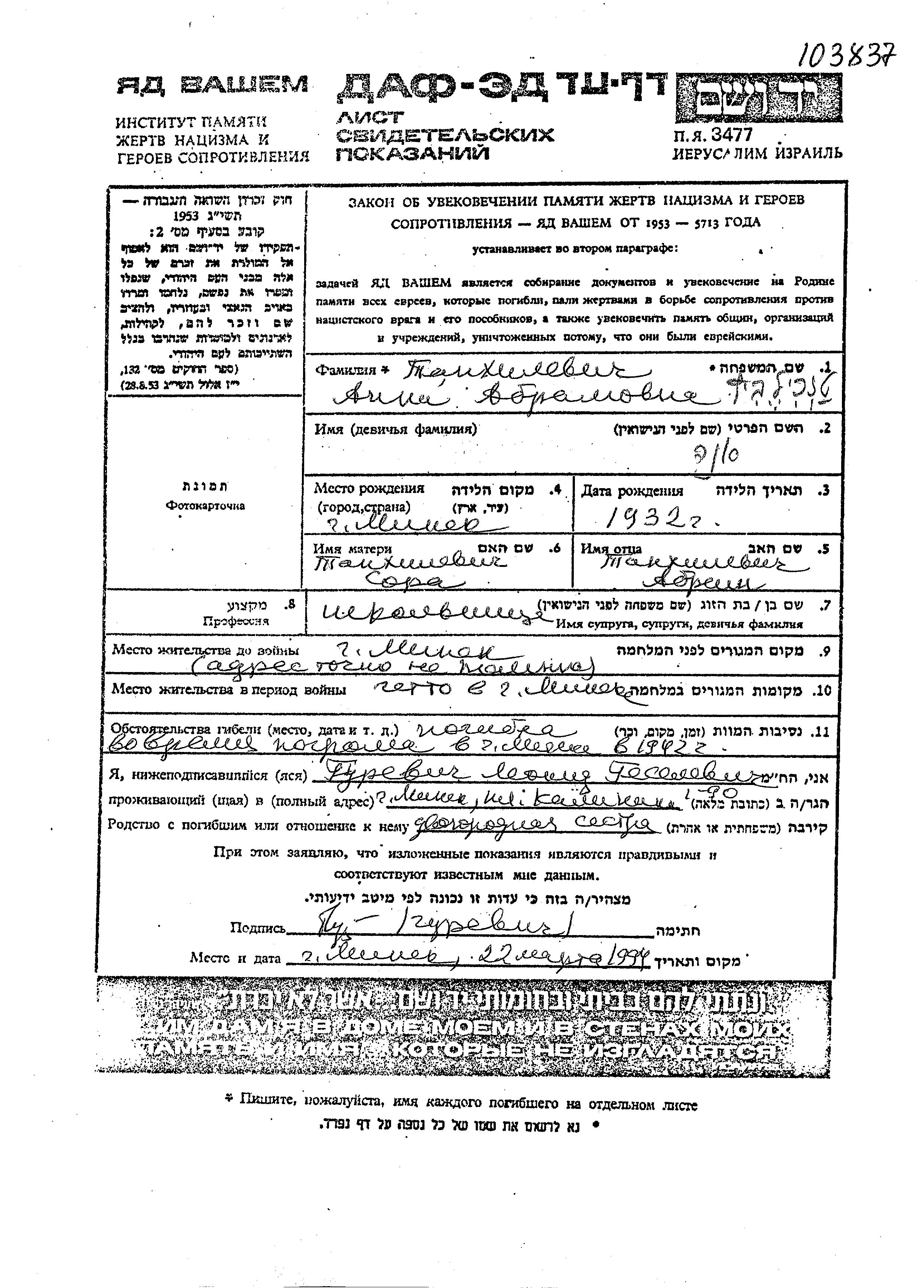 Tankhilevich אנה 1932 Minsk, ביאלורוסיה (ברה"מ) דף-עד