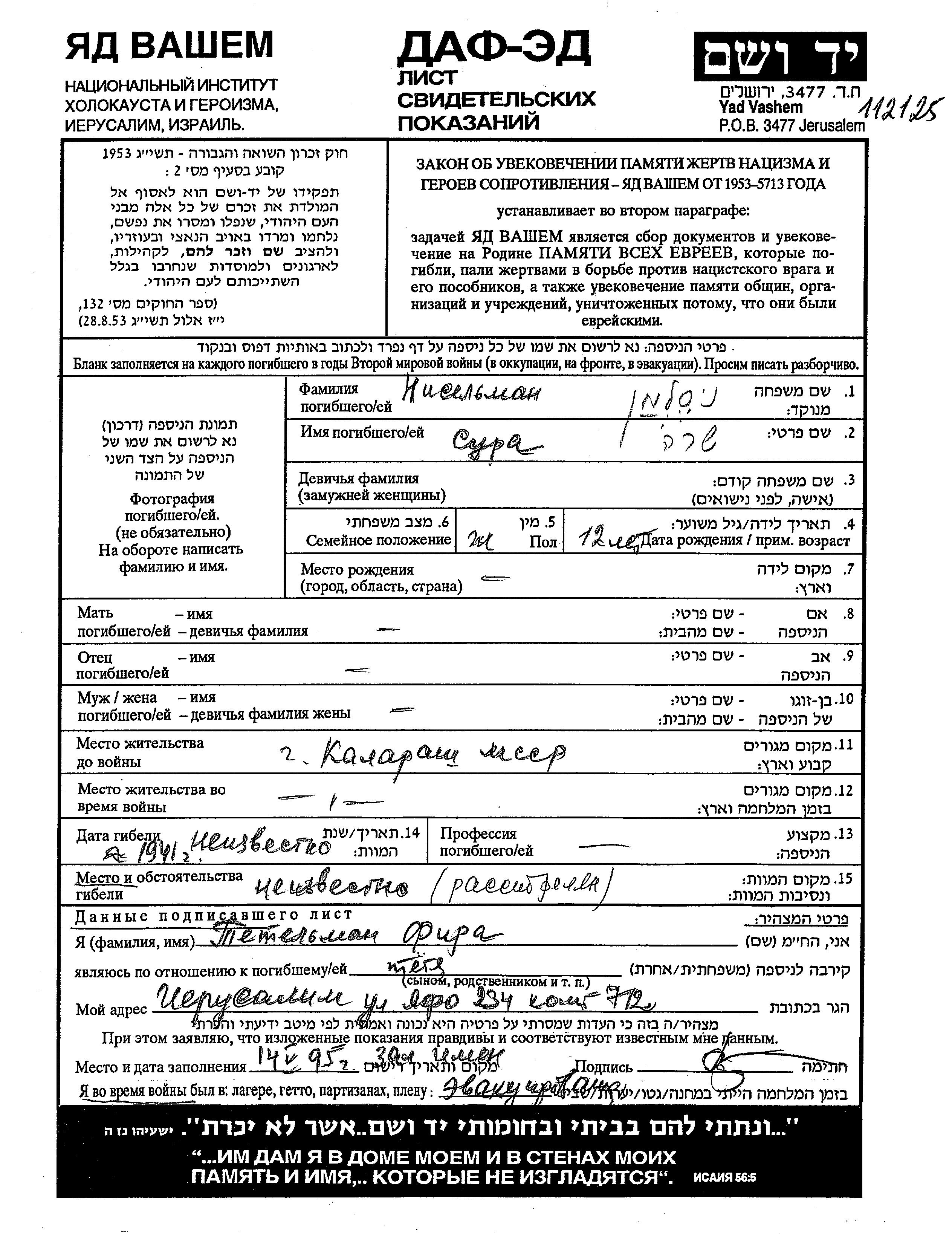 חיפוש שם מוסר דף העד. חיפוש לפי כל שם פרטי, כולל כינוי או שם חיבה